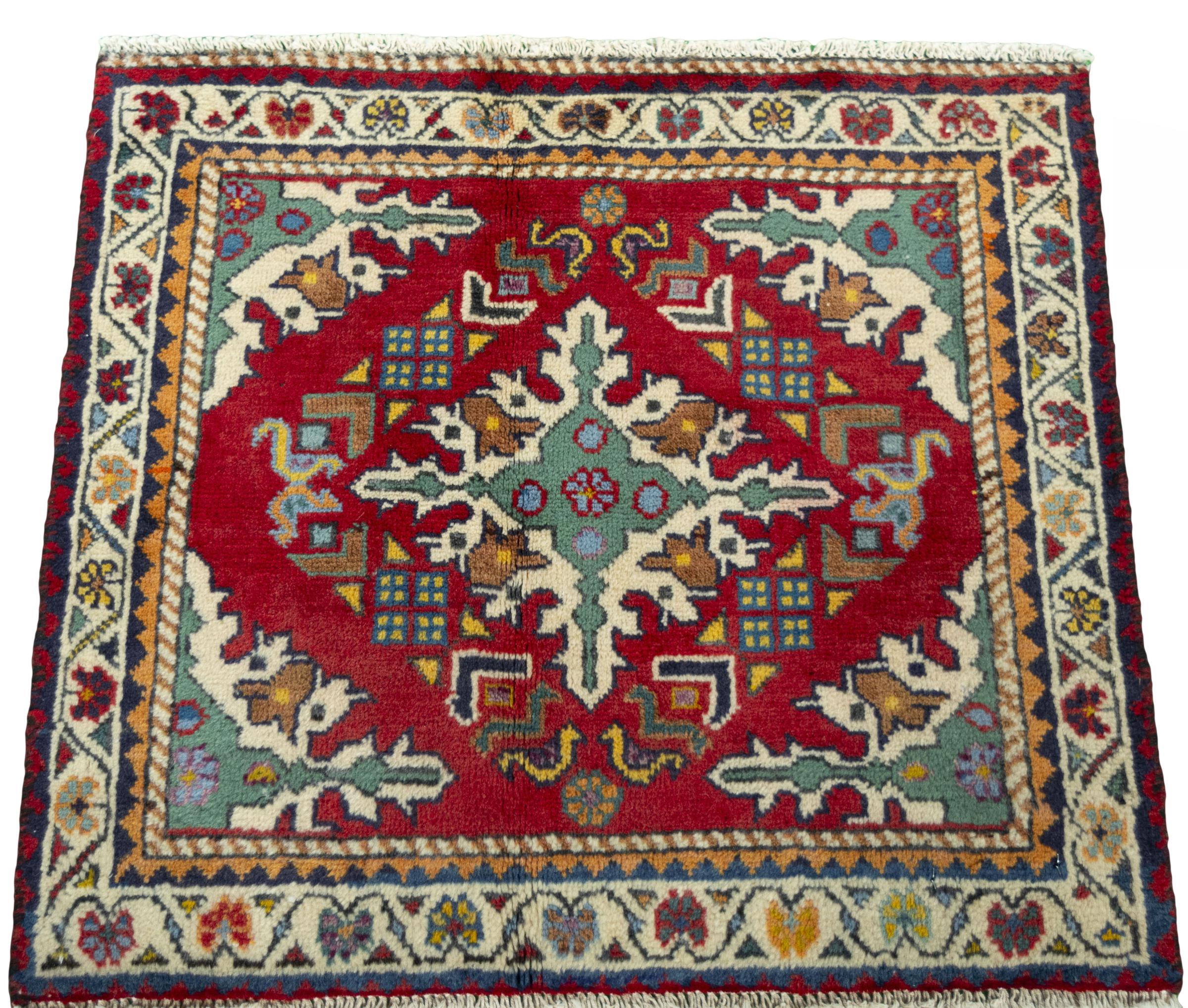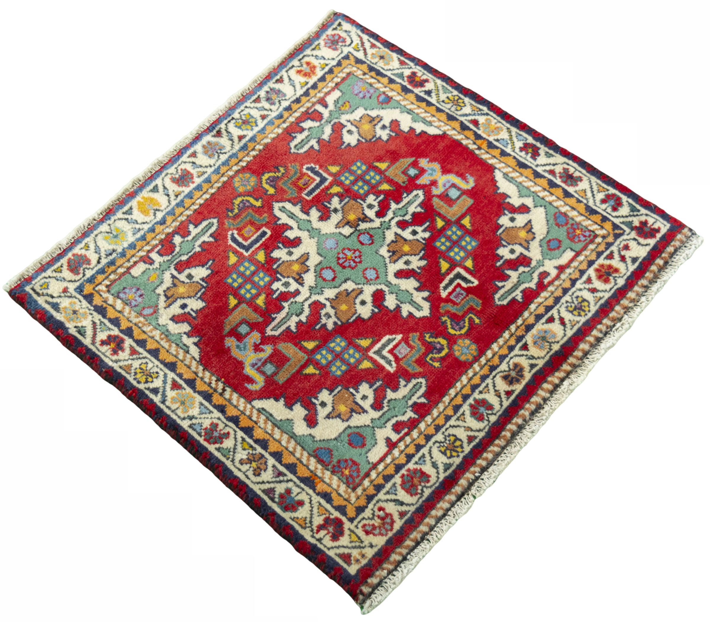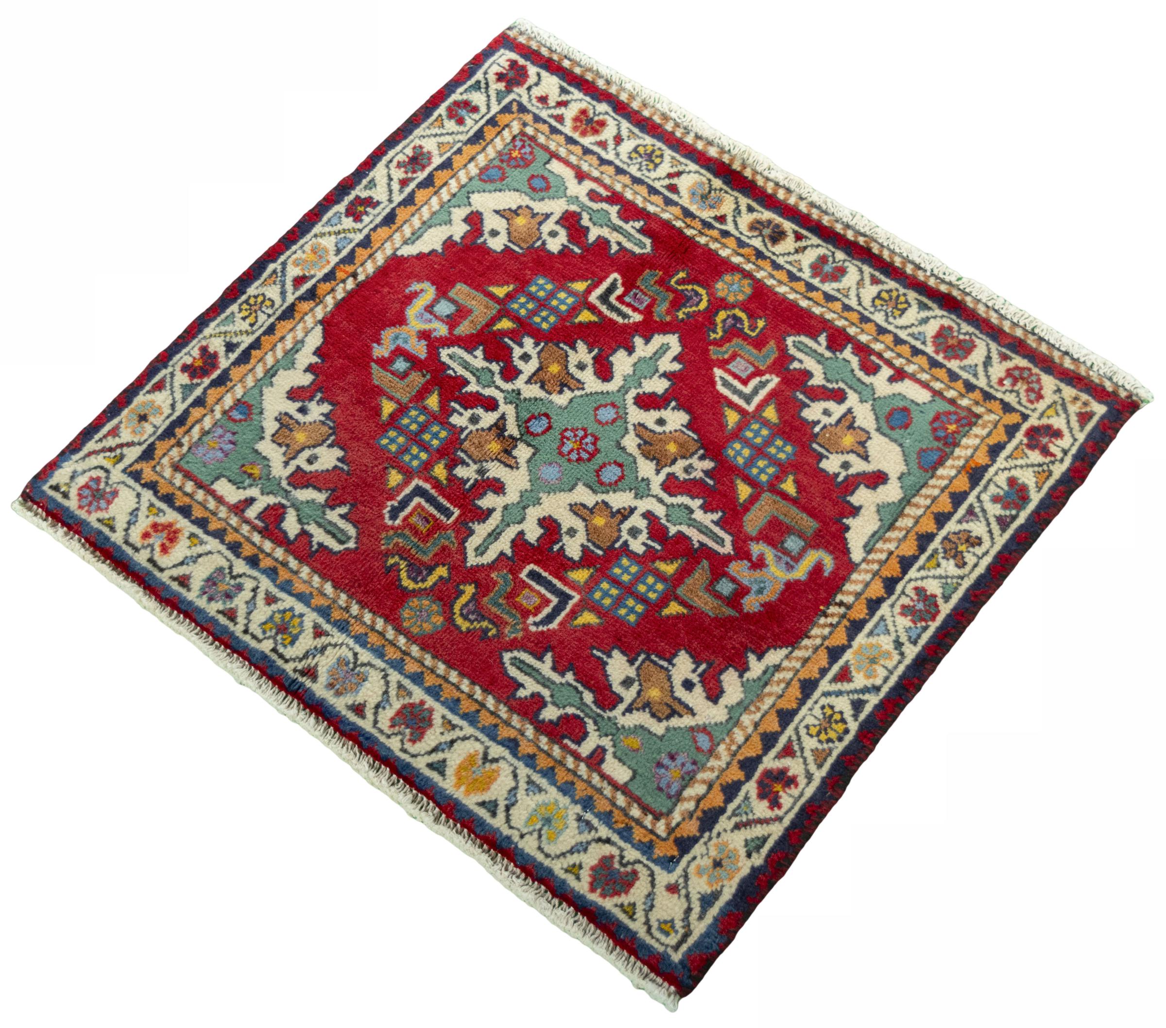 Tapijt ID: 285337007758269 Grootte: 54x61 cm Dikte: ap. 10 mm Knoopdichtheid: 96 000 - 120 000 / m² Verwerking: Handgeknoopte Pool: Hand gesponnen wol Schering: Katoen Oorsprong: Perzië / Iran Leeftijd: Nieuw Gewicht: ap. 1 kg Op voorraad: Uniek - Nog maar 1 op voorraad