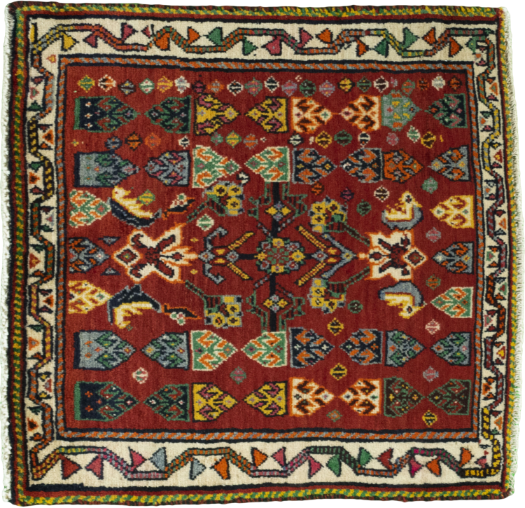 Tapijt ID: 285326009158919 Grootte: 60x62 cm Dikte: ap. 10 mm Knoopdichtheid: 96 000 - 120 000 / m² Verwerking: Handgeknoopte Pool: Hand gesponnen wol Schering: Katoen Oorsprong: Perzië / Iran Leeftijd: Nieuw Gewicht: ap. 1 kg Op voorraad: Uniek - Nog maar 1 op voorraad
