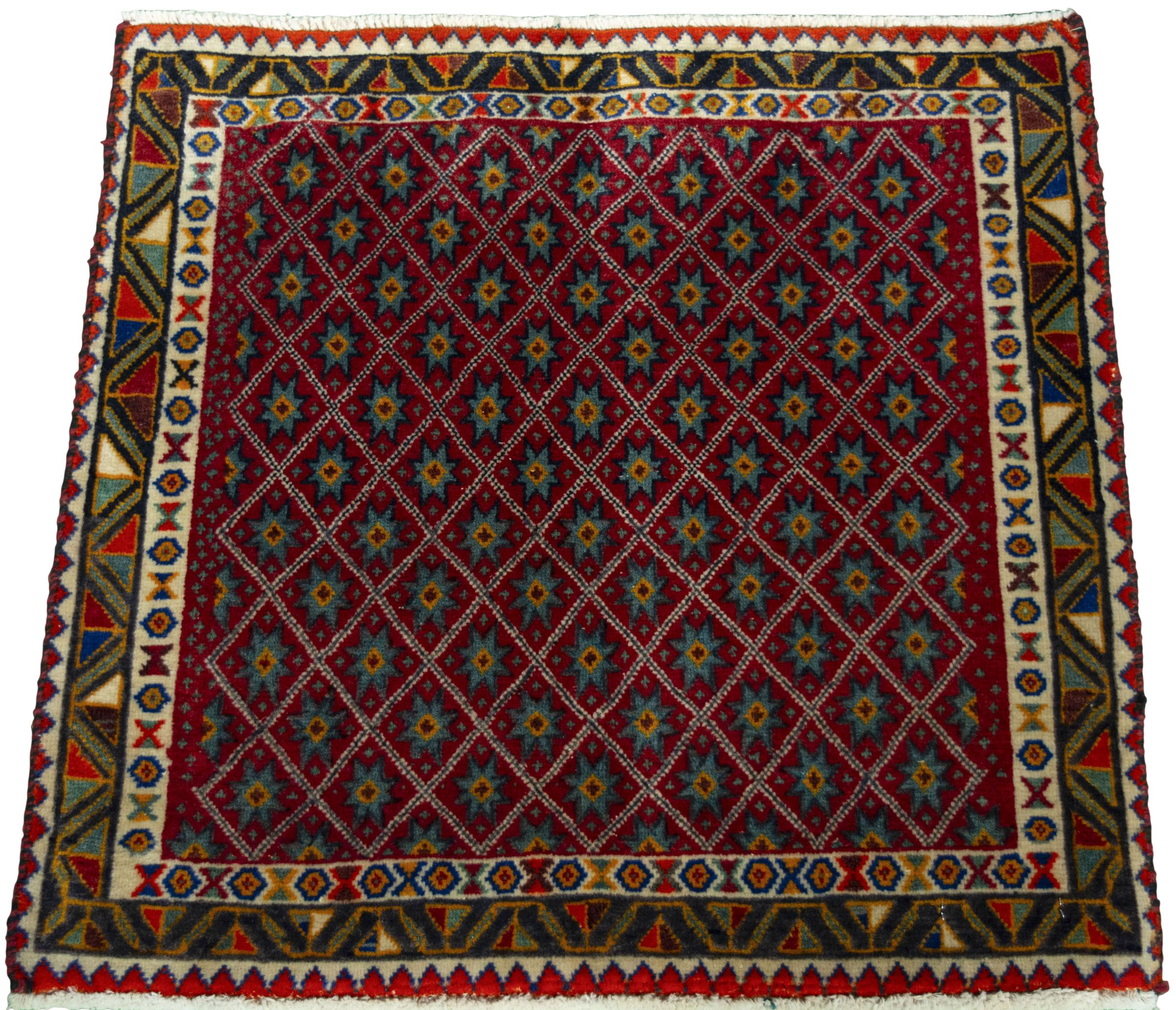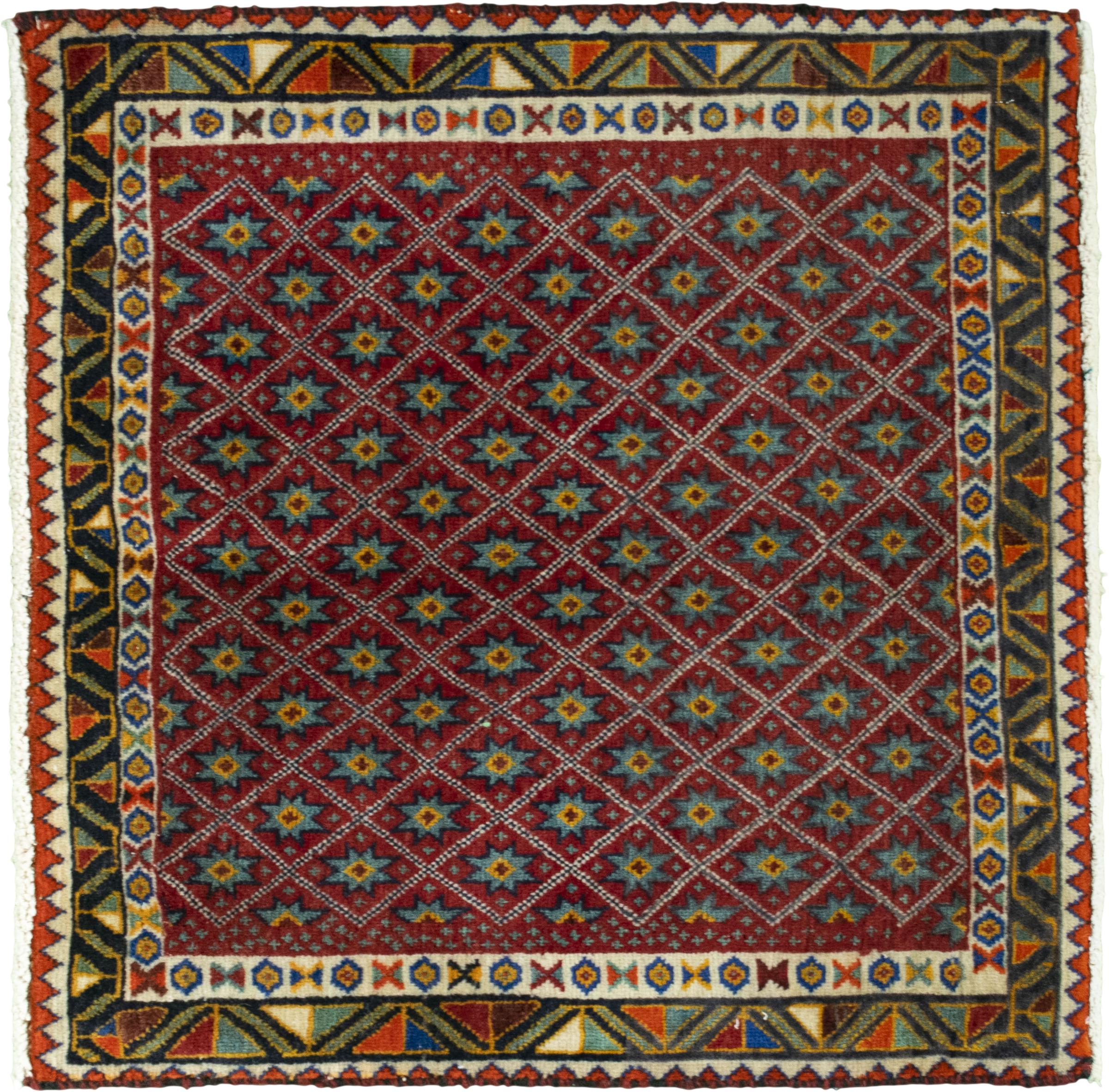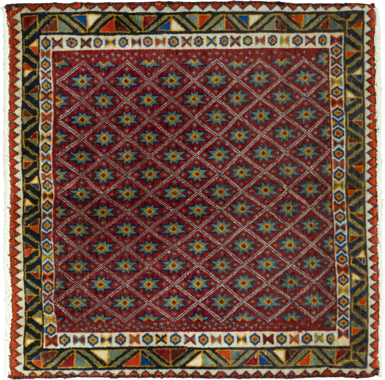 Tapijt ID: 285348007952302 Grootte: 63x64 cm Dikte: ap. 10 mm Knoopdichtheid: 96 000 - 120 000 / m² Verwerking: Handgeknoopte Pool: Hand gesponnen wol Schering: Katoen Oorsprong: Perzië / Iran Leeftijd: Nieuw Gewicht: ap. 1 kg Op voorraad: Uniek - Nog maar 1 op voorraad