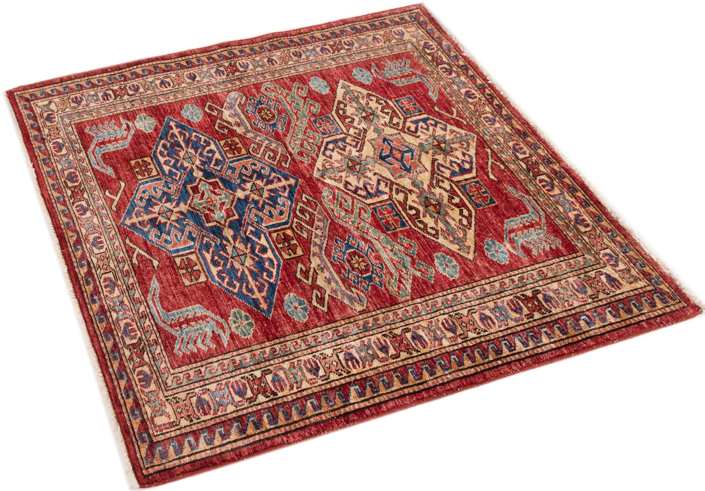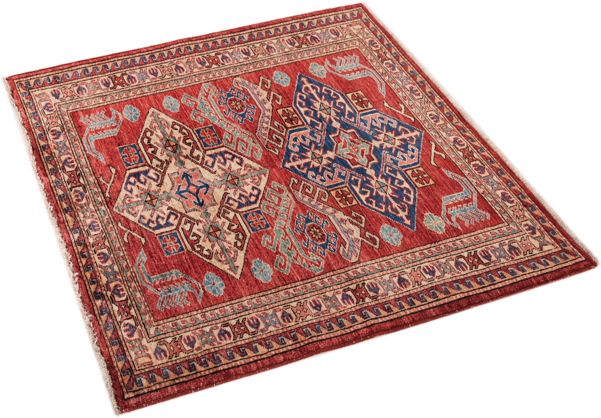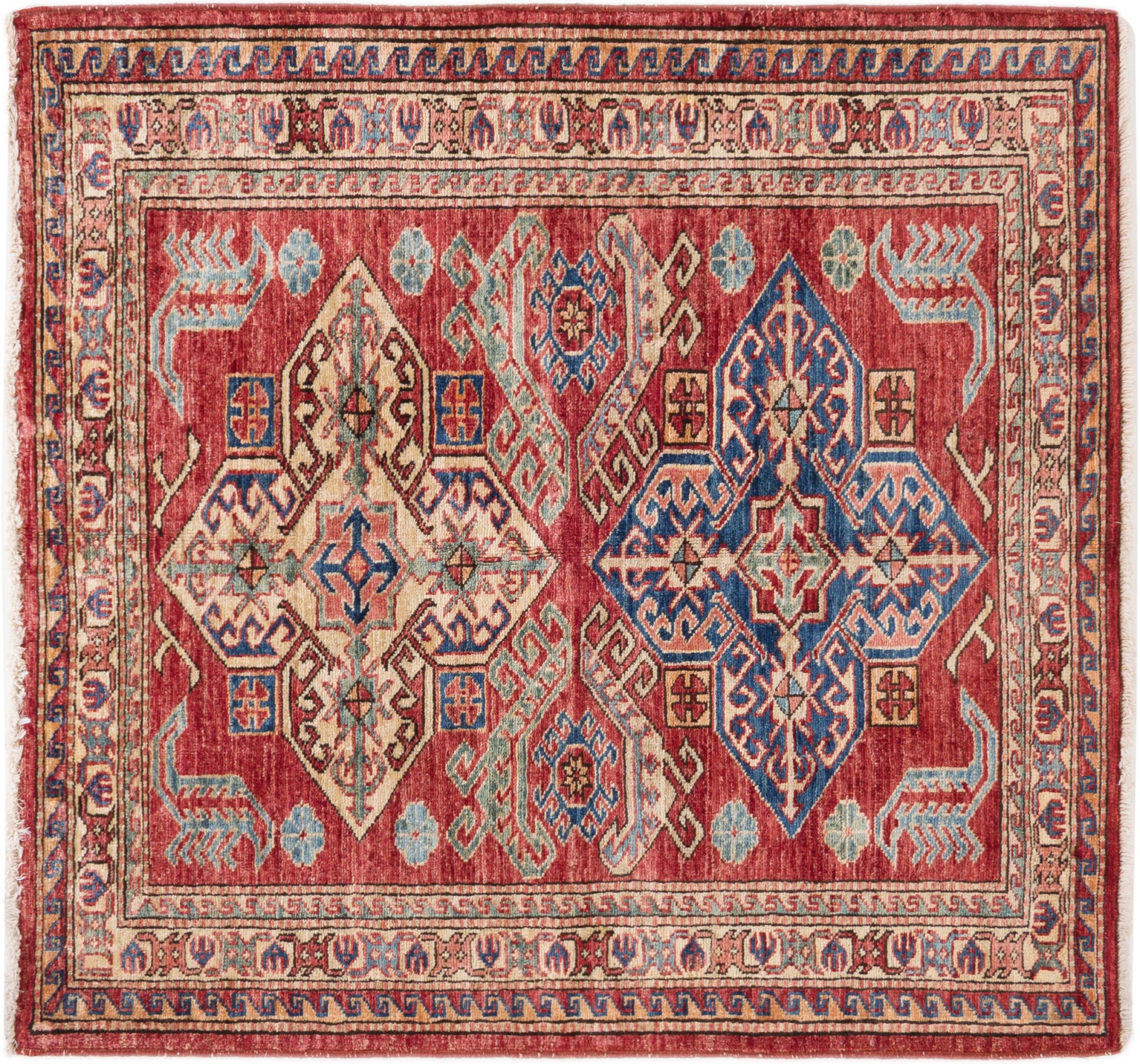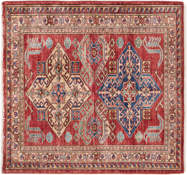 Tapijt ID: 298810006608 Grootte: 102x97 cm Dikte: ap. 5 mm Knoopdichtheid: 200 000 - 250 000 / m² Verwerking: Handgeknoopte Pool: Hand gesponnen wol Schering: Wol Oorsprong: Afghanistan Leeftijd: Nieuw Gewicht: ap. 2 kg Op voorraad: Uniek - Nog maar 1 op voorraad