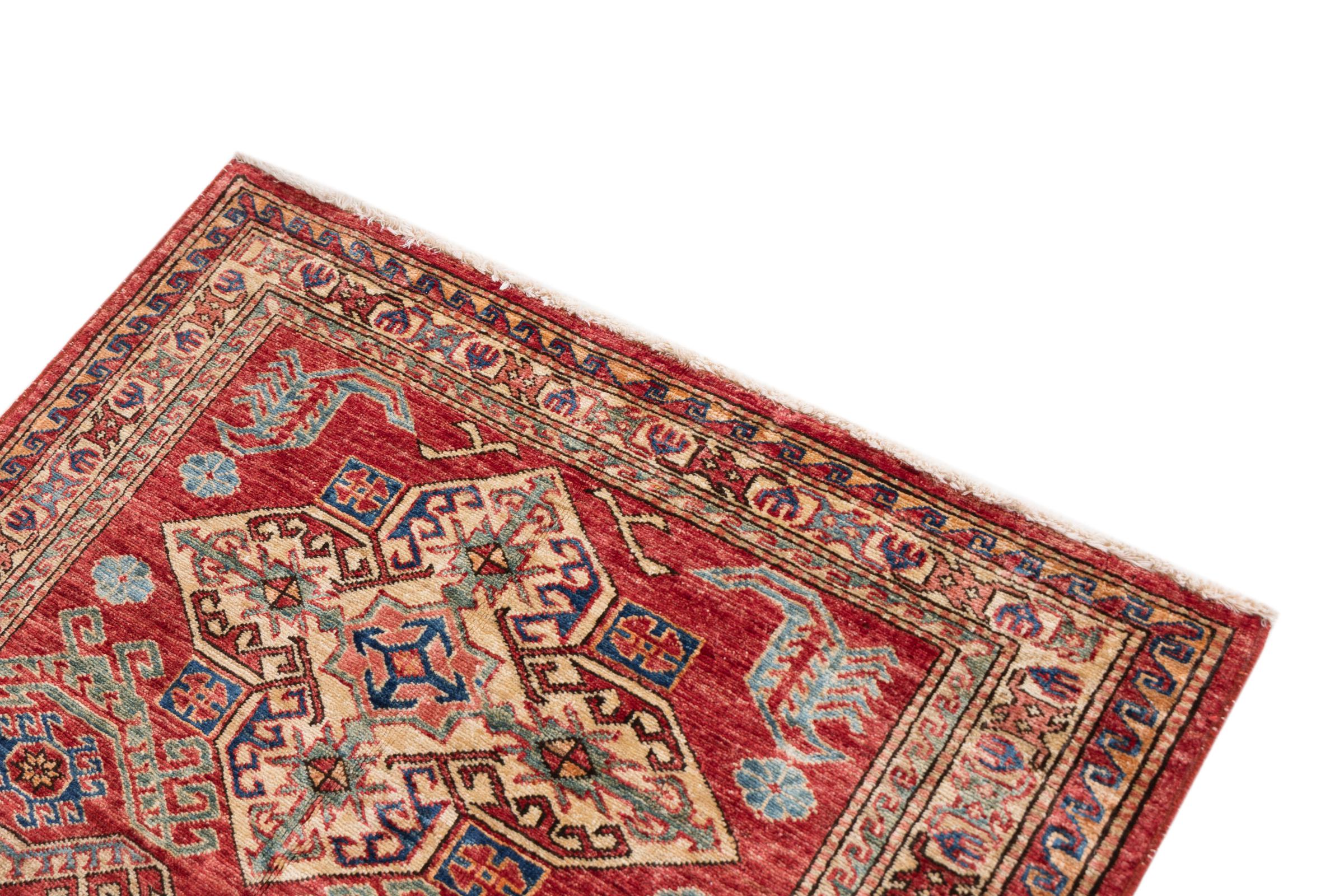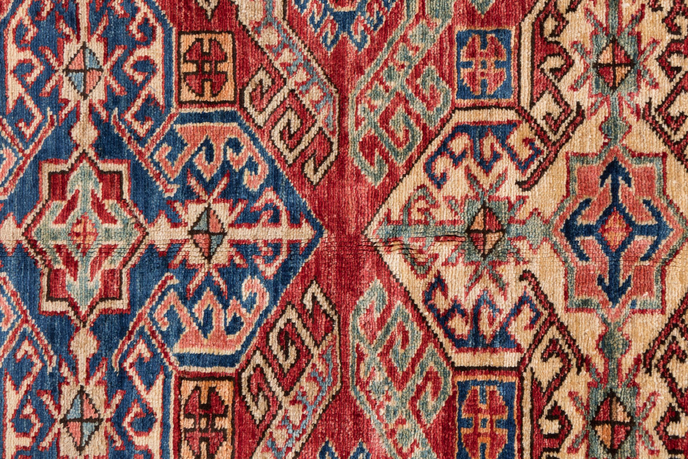 Kazak-vloerkleden zijn duurzame, levendige wollen vloerkleden die bekend staan om hun unieke geometrische patronen, uitgebalanceerde kleuren en uitzonderlijk vakmanschap. Ze zullen een boeiende en cultureel rijke sfeer in uw ruimte creëren. Oorspronkelijk afkomstig uit de Kaukasus en een van de oudste soorten tapijten, worden ze nu voornamelijk gemaakt door Kazachen in Afghanistan en Pakistan. Een antiek Kazachs tapijt kan zeer waardevol zijn voor verzamelaars.