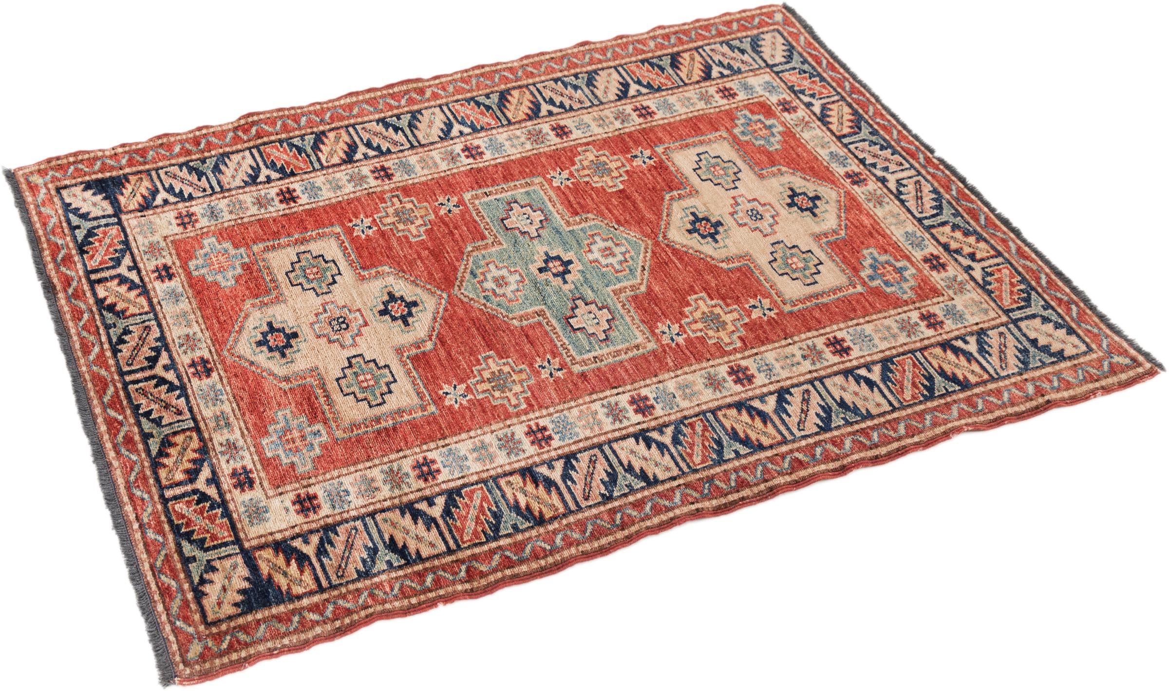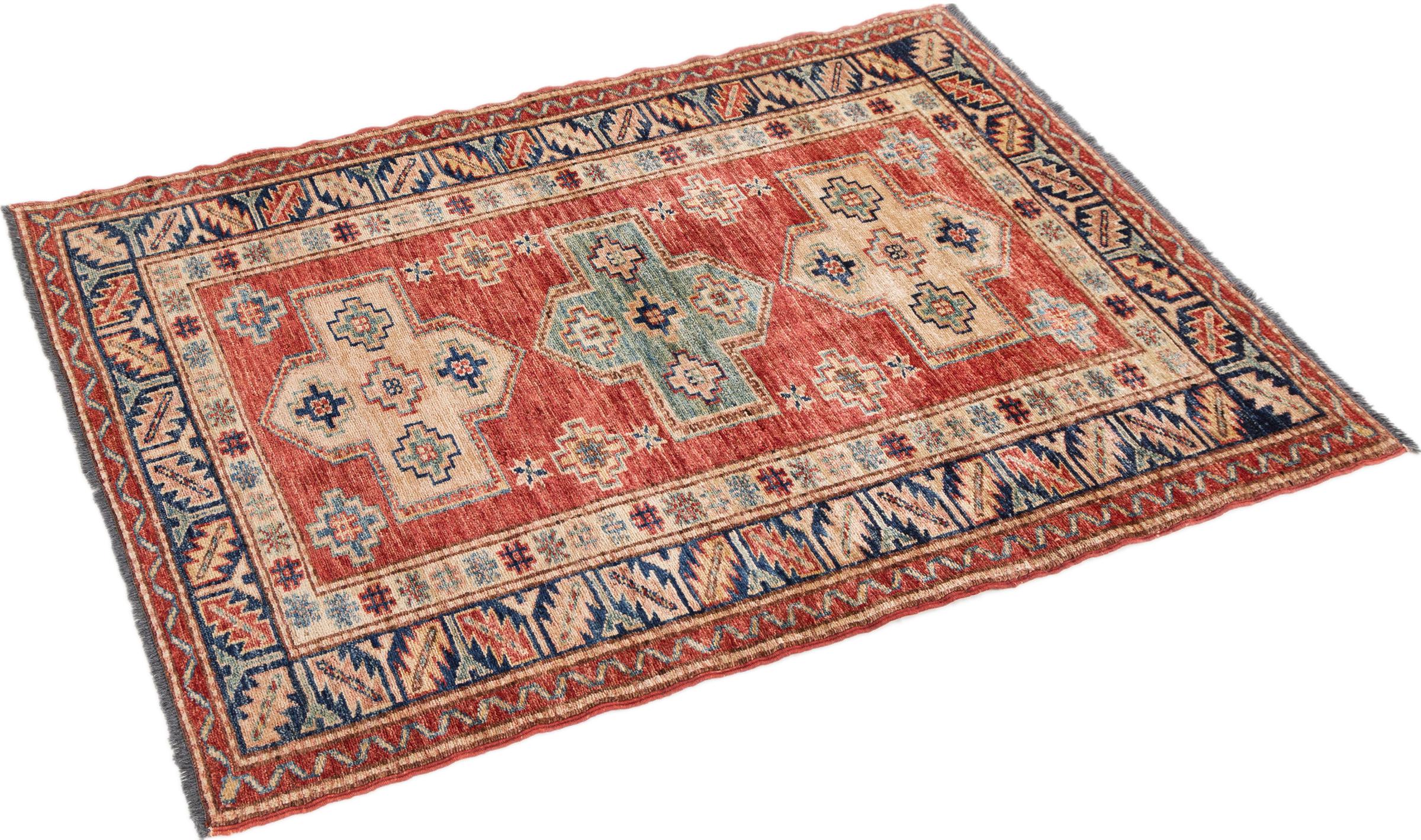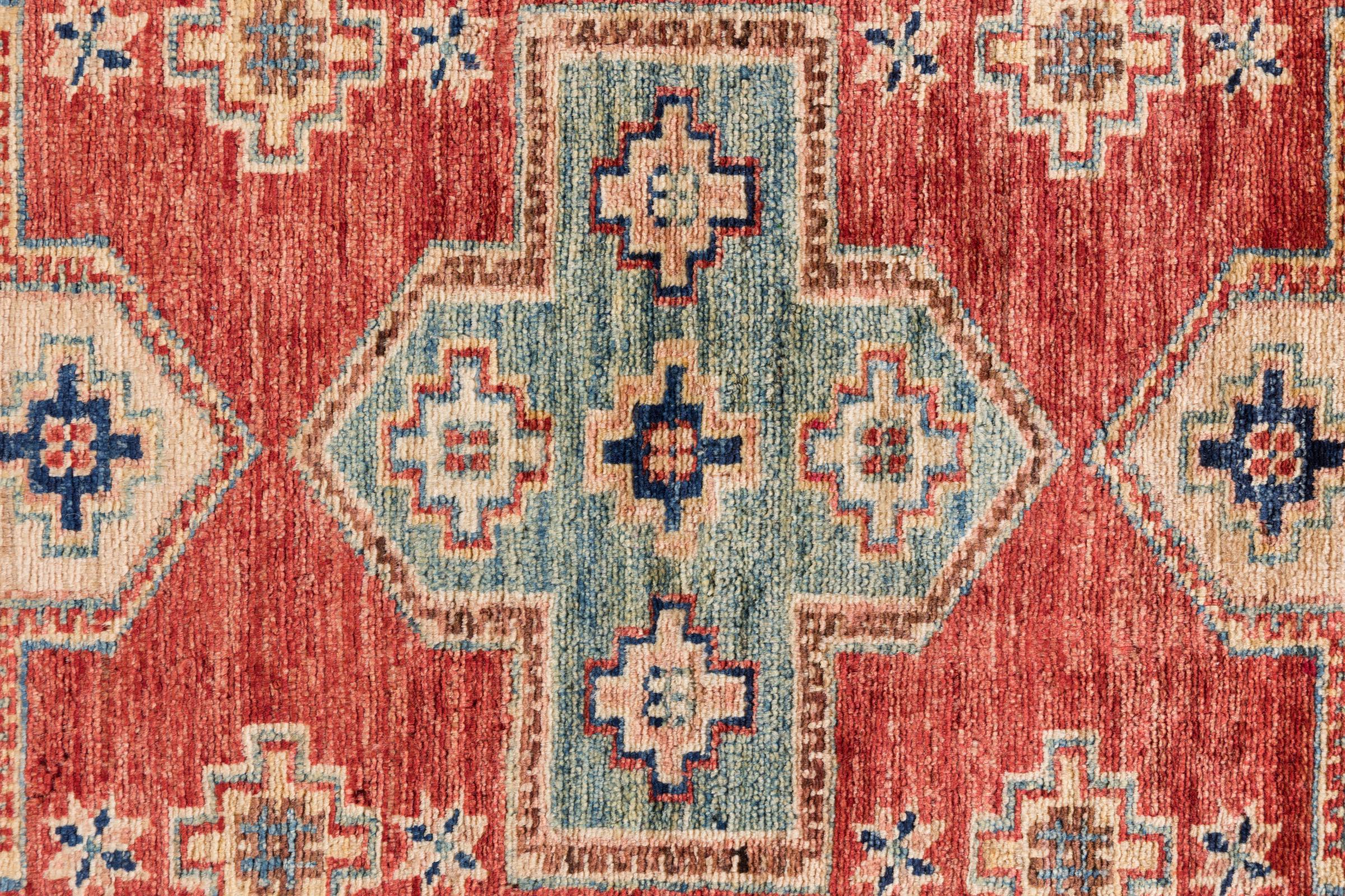 Kazak-vloerkleden zijn duurzame, levendige wollen vloerkleden die bekend staan om hun unieke geometrische patronen, uitgebalanceerde kleuren en uitzonderlijk vakmanschap. Ze zullen een boeiende en cultureel rijke sfeer in uw ruimte creëren. Oorspronkelijk afkomstig uit de Kaukasus en een van de oudste soorten tapijten, worden ze nu voornamelijk gemaakt door Kazachen in Afghanistan en Pakistan. Een antiek Kazachs tapijt kan zeer waardevol zijn voor verzamelaars.
