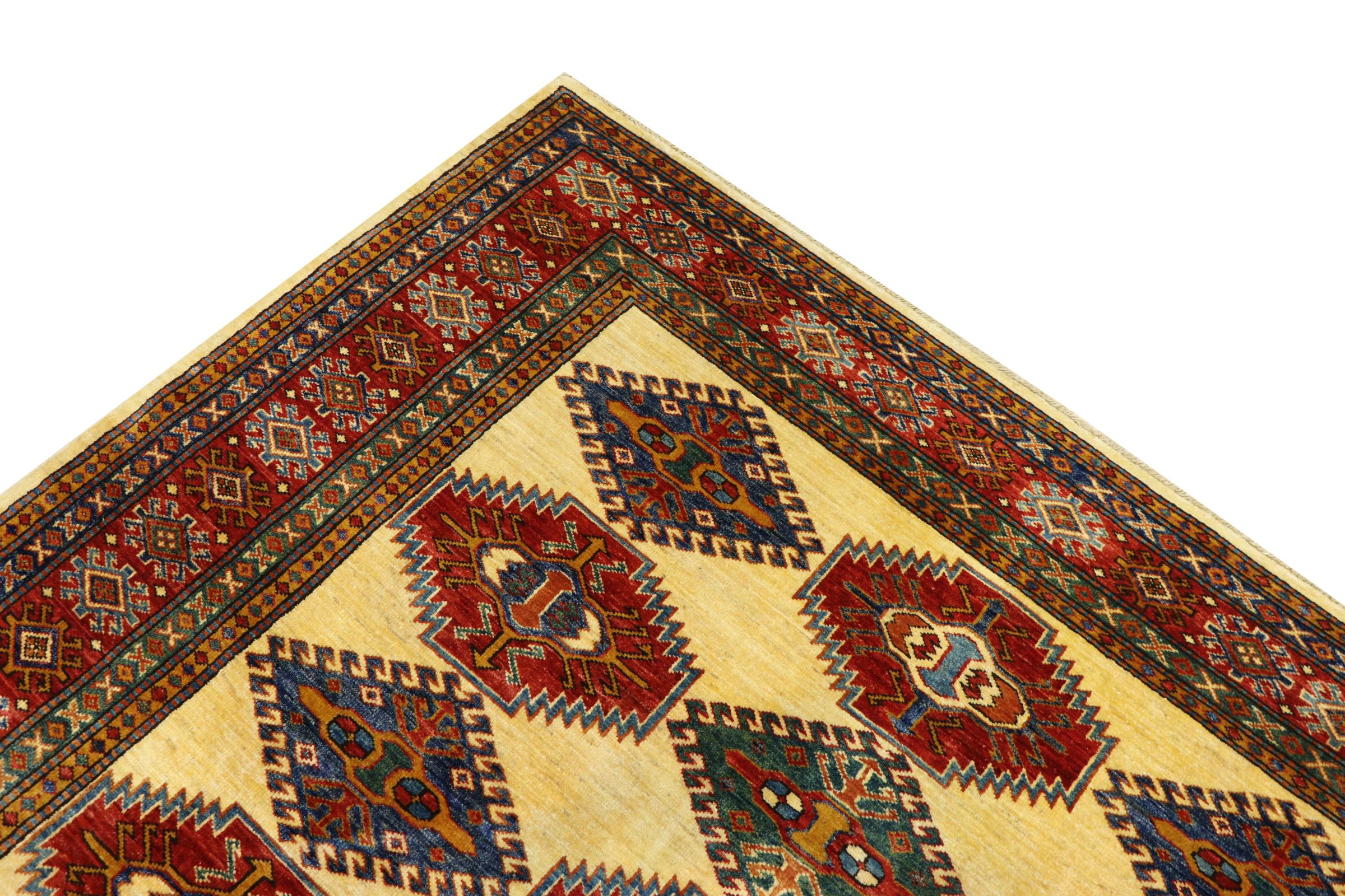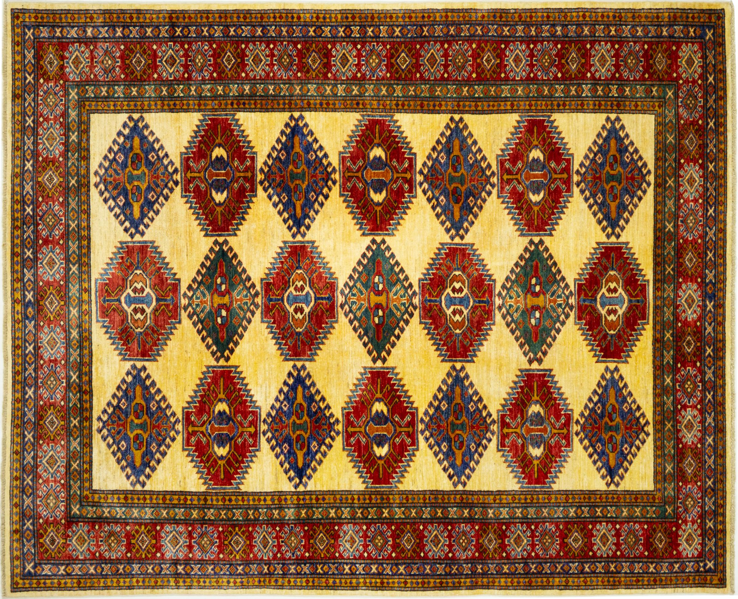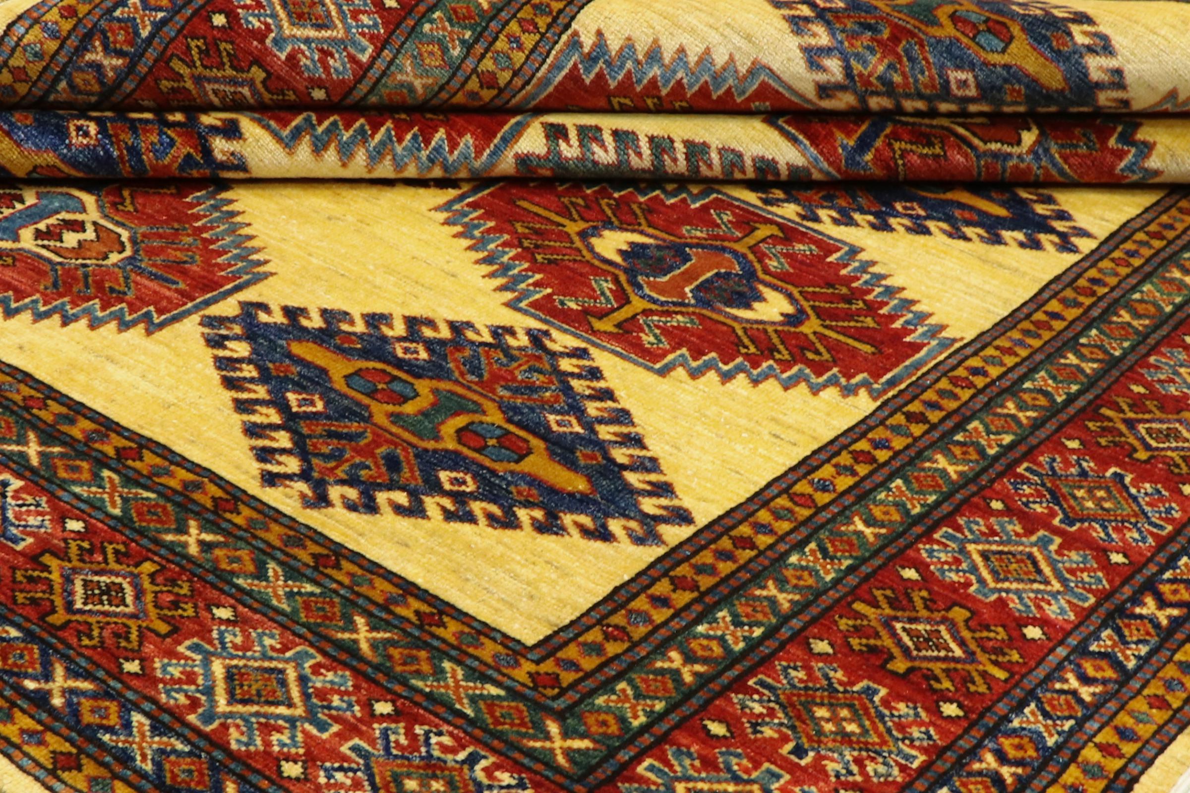 Kazak-vloerkleden zijn duurzame, levendige wollen vloerkleden die bekend staan om hun unieke geometrische patronen, uitgebalanceerde kleuren en uitzonderlijk vakmanschap. Ze zullen een boeiende en cultureel rijke sfeer in uw ruimte creëren. Oorspronkelijk afkomstig uit de Kaukasus en een van de oudste soorten tapijten, worden ze nu voornamelijk gemaakt door Kazachen in Afghanistan en Pakistan. Een antiek Kazachs tapijt kan zeer waardevol zijn voor verzamelaars.