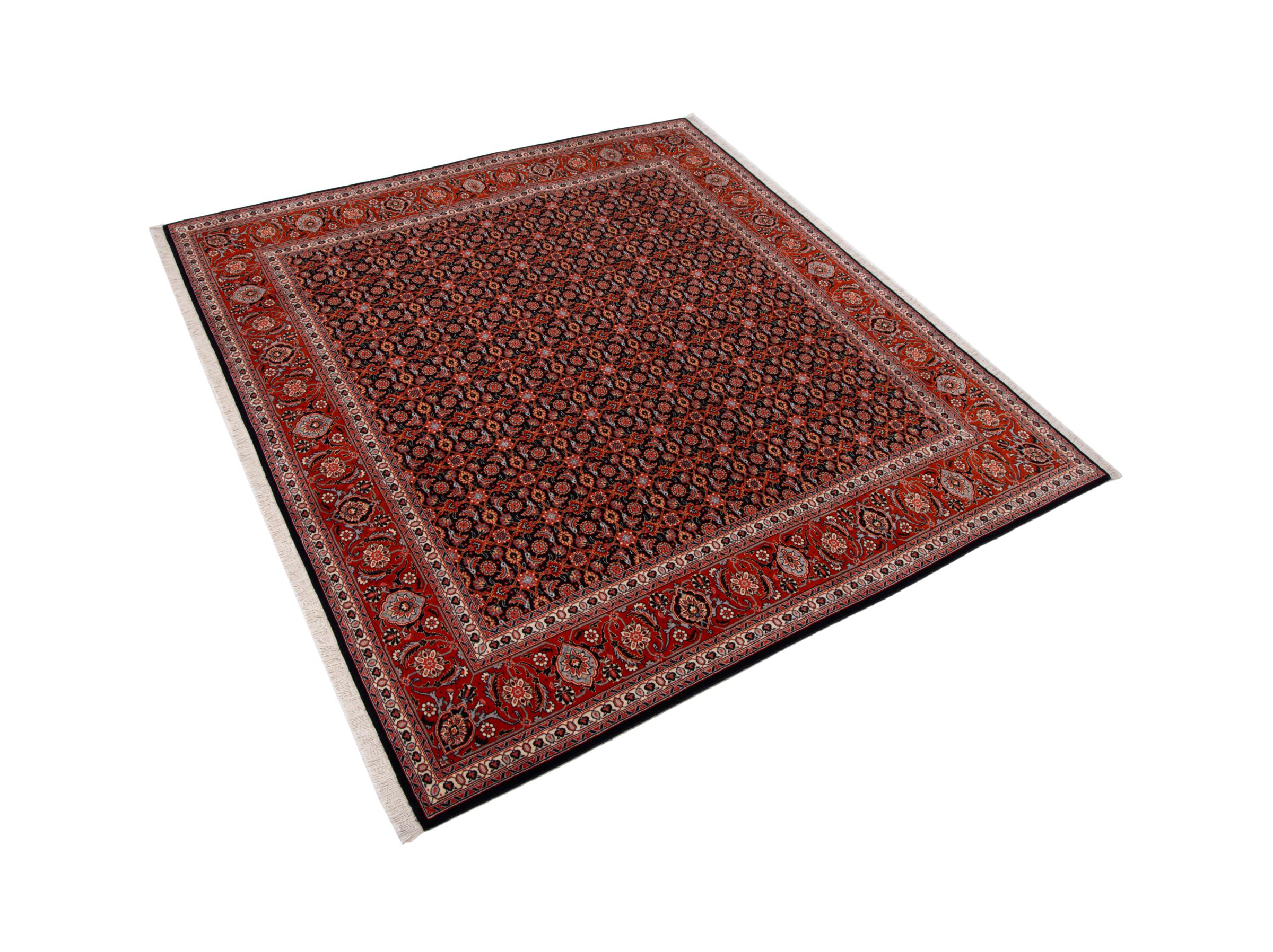 Tapijt ID: 293024003360416 Grootte: 192x199 cm Dikte: ap. 7 mm Knoopdichtheid: 440 000 - 490 000 / m² Verwerking: Handgeknoopte Pool: Wol met zijde Schering: Katoen Oorsprong: Perzië / Iran Leeftijd: Nieuw Gewicht: ap. 11 kg Ook wel bekend als Tabriz, Tabris, Täbris, Tebriz, Tebris, 40Raj, 50Raj Op voorraad: Uniek - Nog maar 1 op voorraad