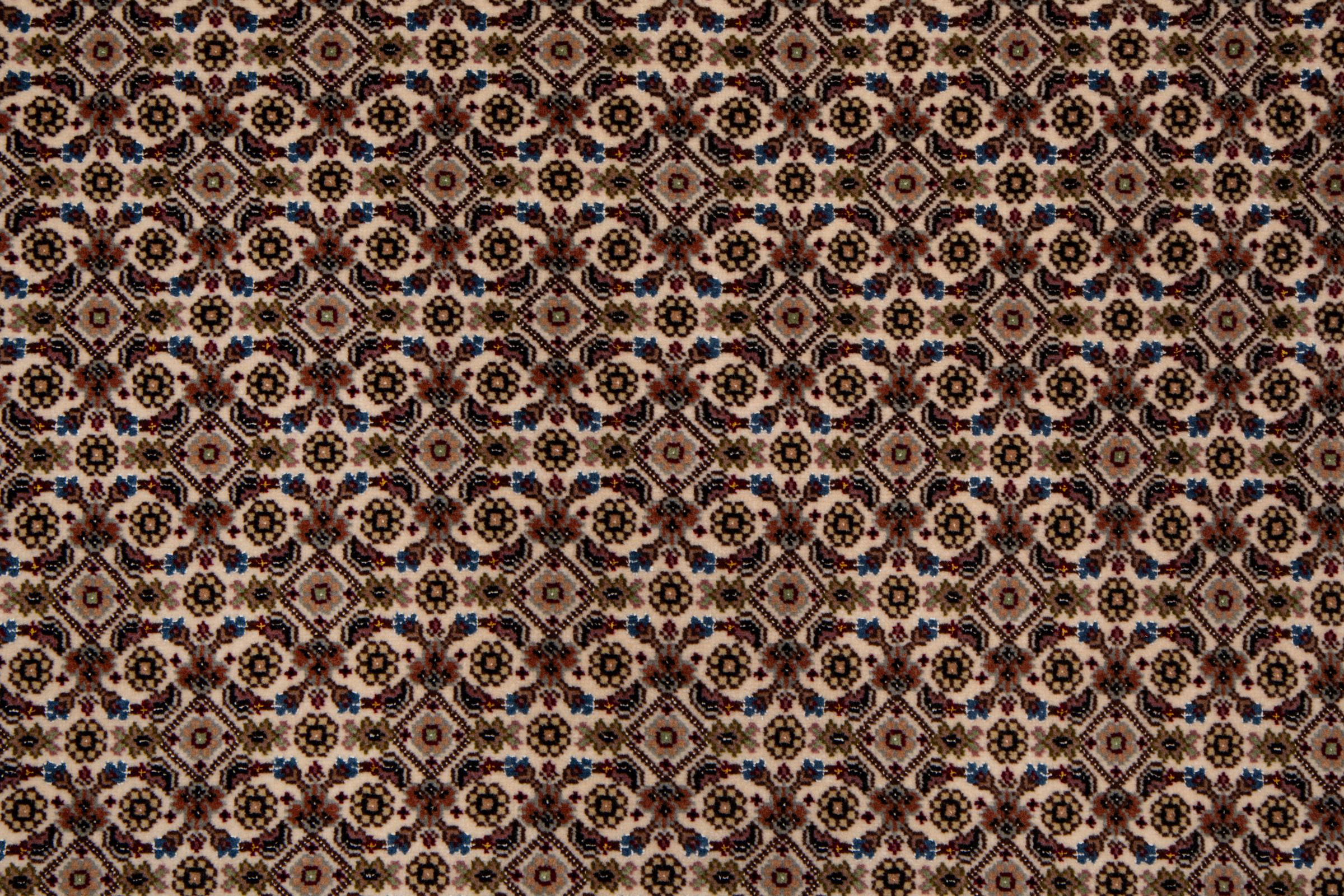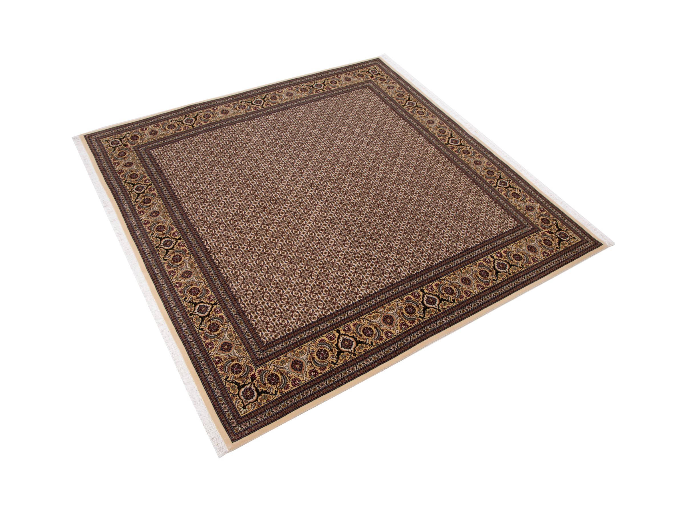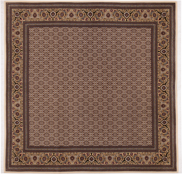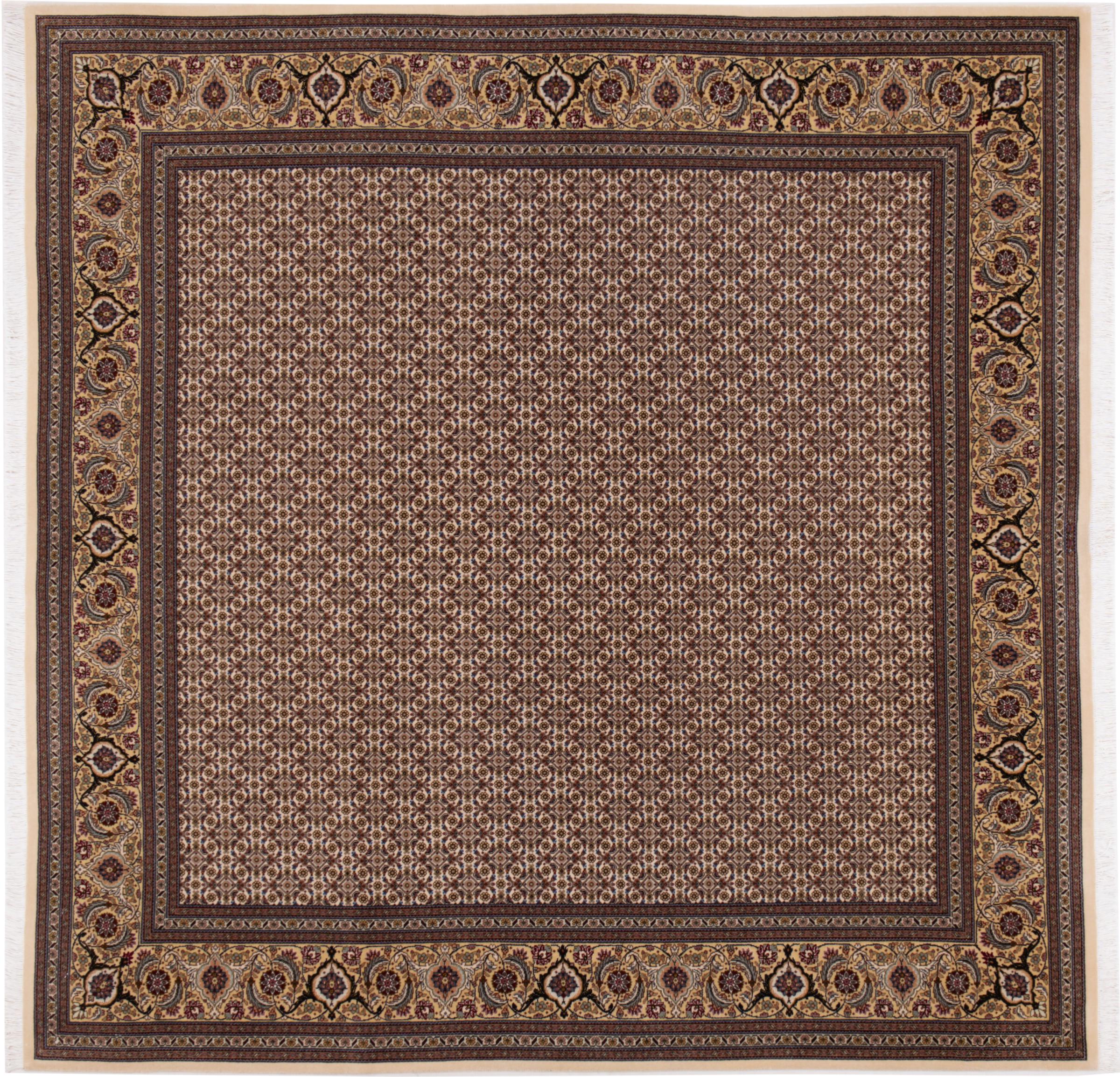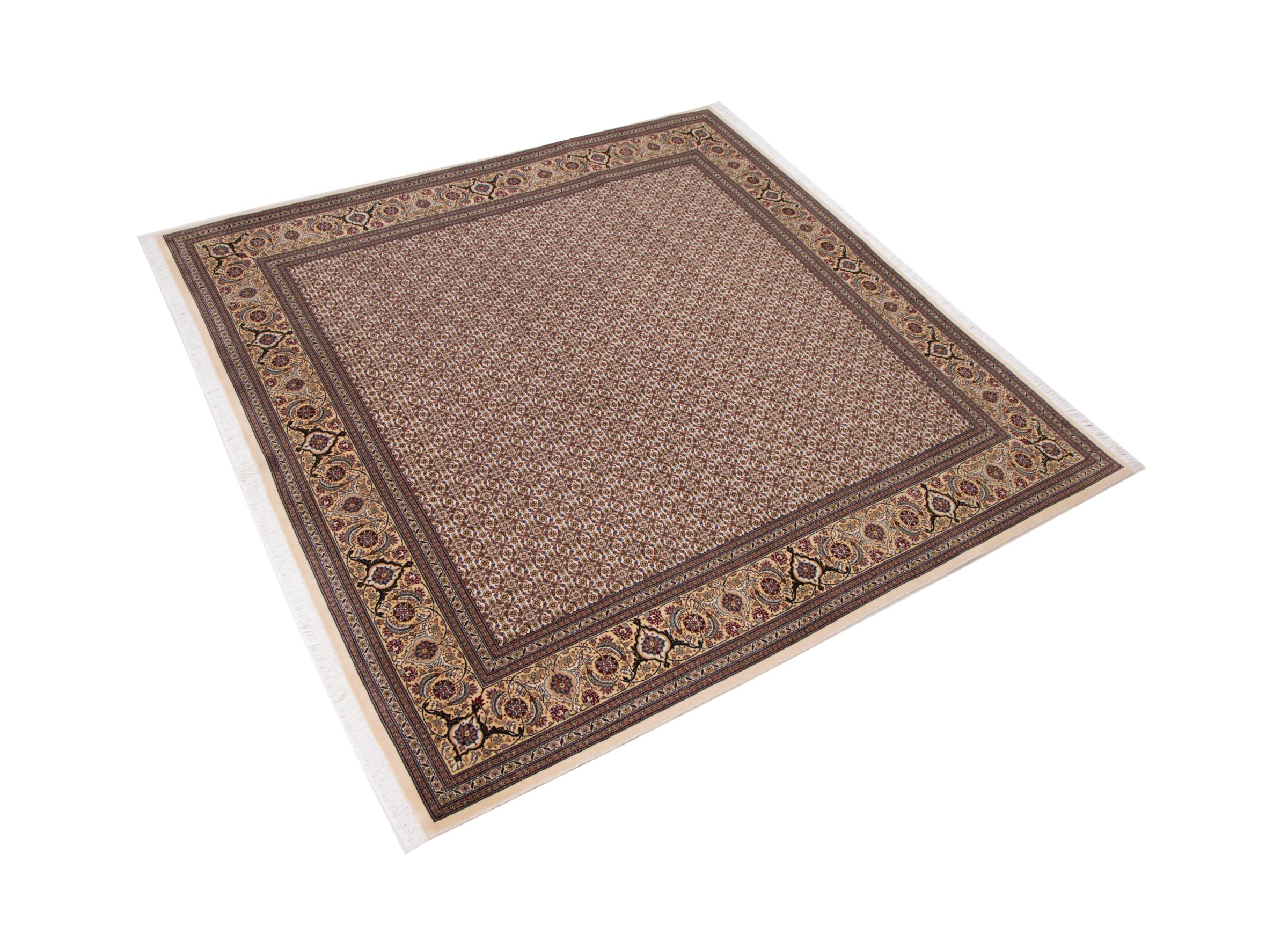 Tapijt ID: 293016003508112 Grootte: 197x199 cm Dikte: ap. 7 mm Knoopdichtheid: 440 000 - 490 000 / m² Verwerking: Handgeknoopte Pool: Wol met zijde Schering: Katoen Oorsprong: Perzië / Iran Leeftijd: Nieuw Gewicht: ap. 12 kg Ook wel bekend als Tabriz, Tabris, Täbris, Tebriz, Tebris, 40Raj, 50Raj Op voorraad: Uniek - Nog maar 1 op voorraad