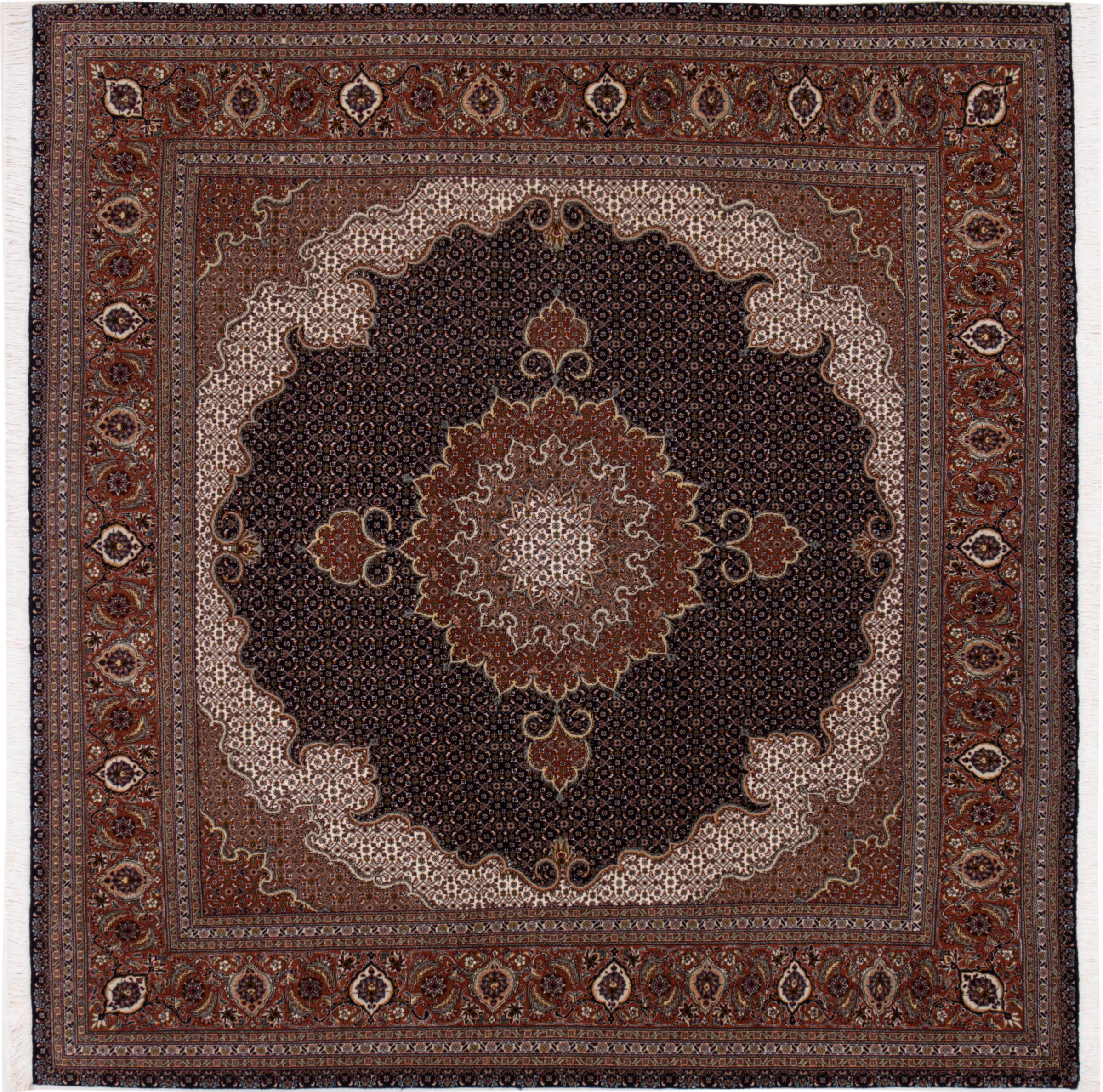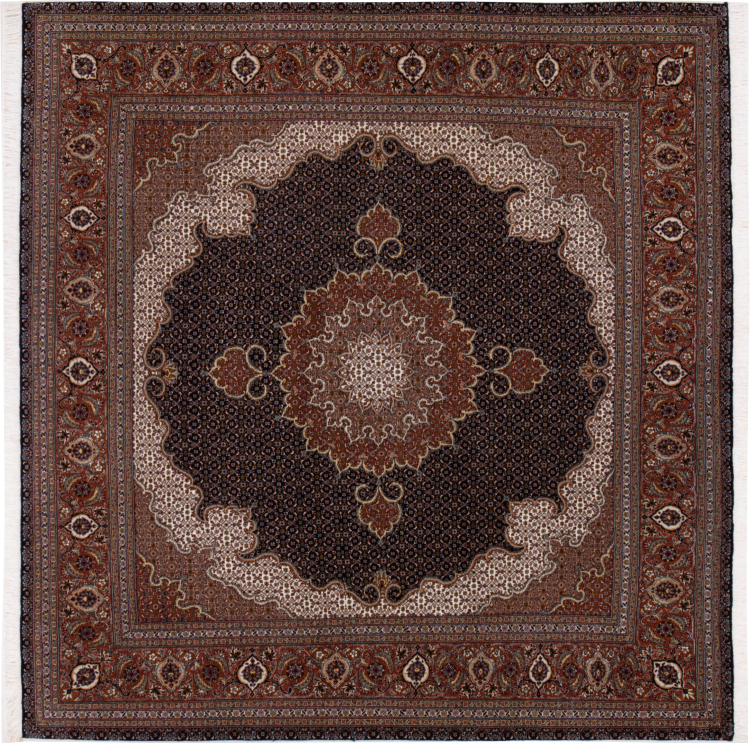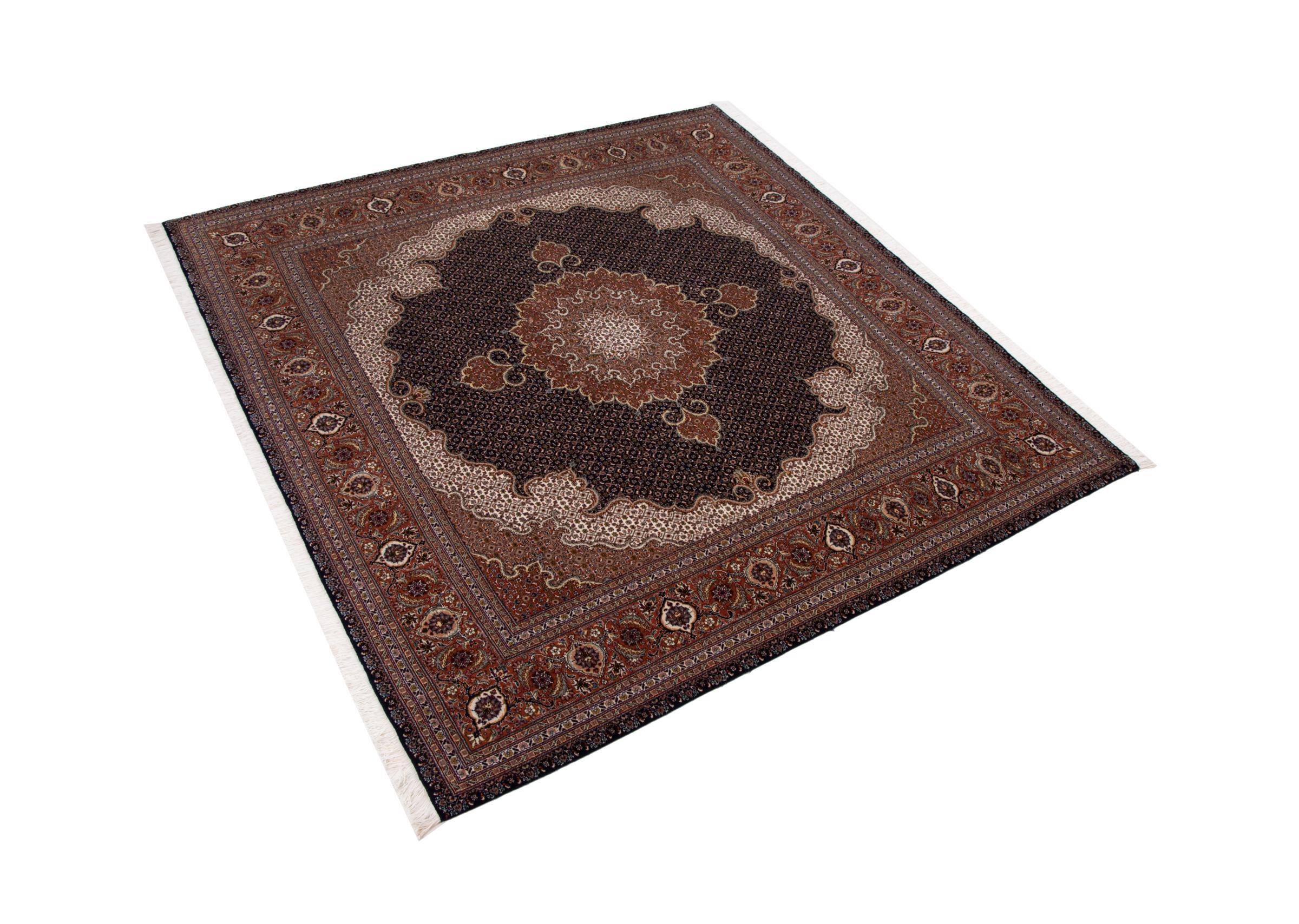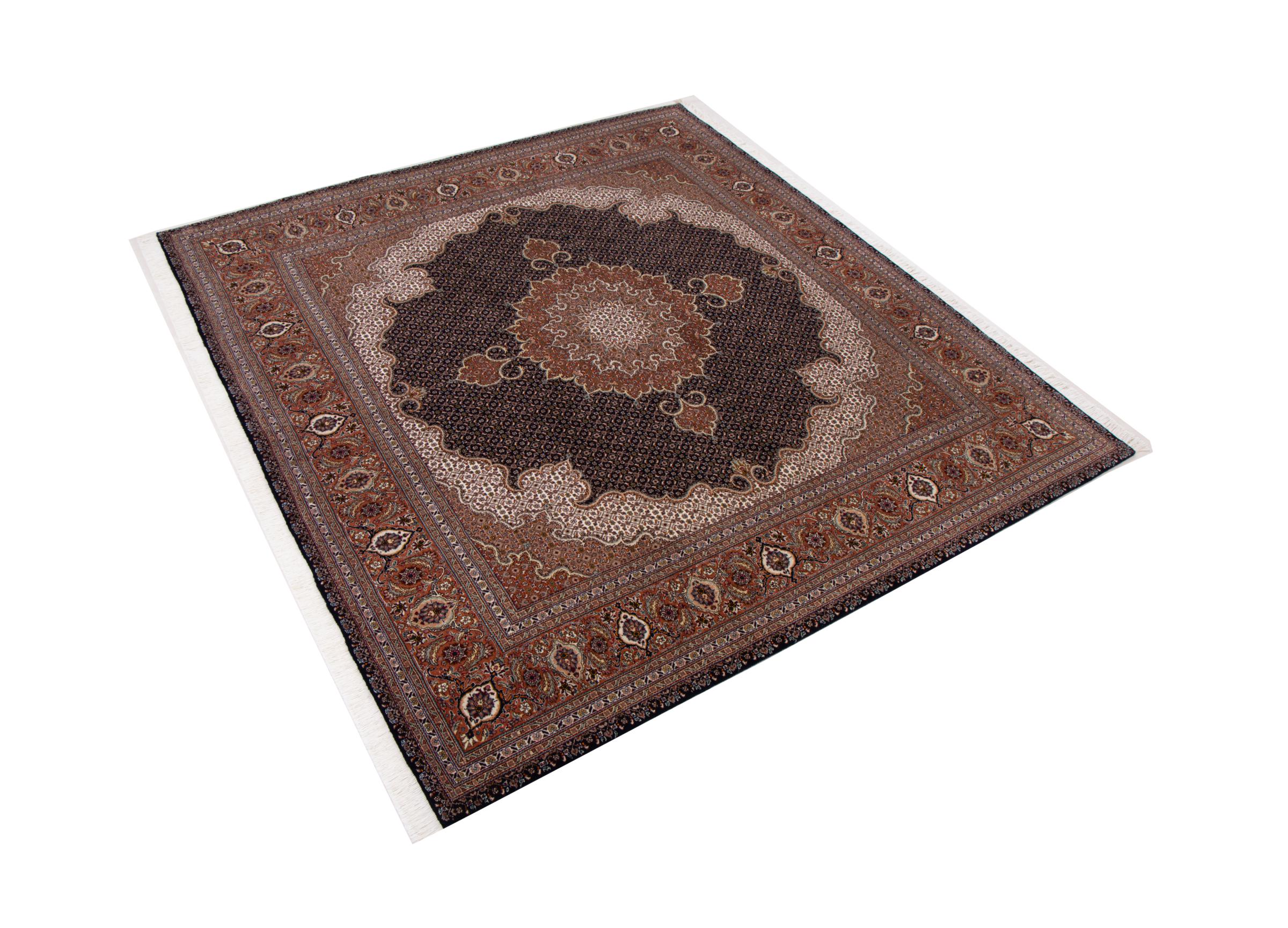 Tapijt ID: 293021009083614 Grootte: 201x202 cm Dikte: ap. 7 mm Knoopdichtheid: 440 000 - 490 000 / m² Verwerking: Handgeknoopte Pool: Wol met zijde Schering: Katoen Oorsprong: Perzië / Iran Leeftijd: Nieuw Gewicht: ap. 12 kg Ook wel bekend als Tabriz, Tabris, Täbris, Tebriz, Tebris, 40Raj, 50Raj Op voorraad: Uniek - Nog maar 1 op voorraad