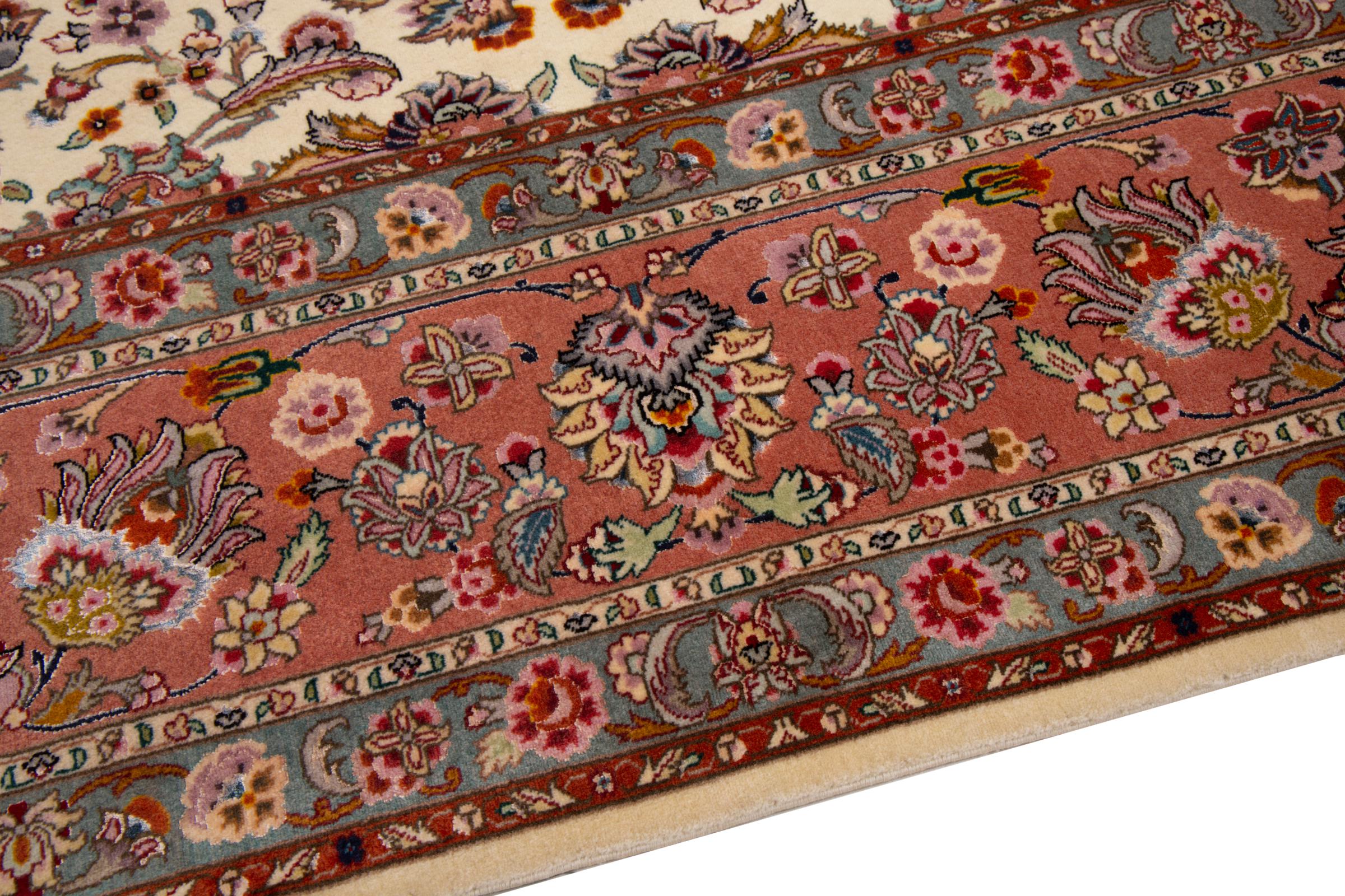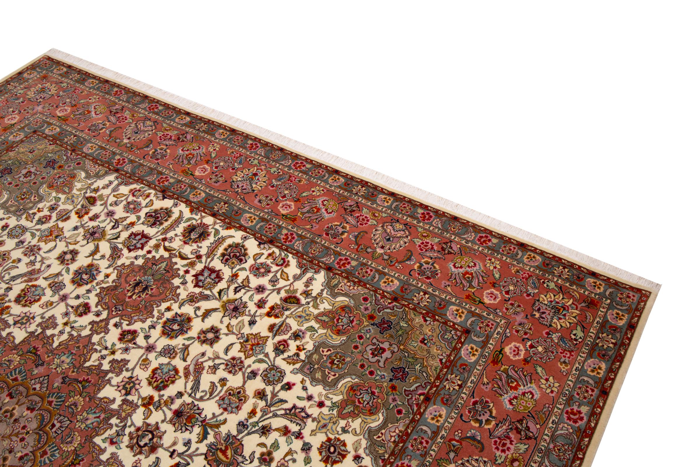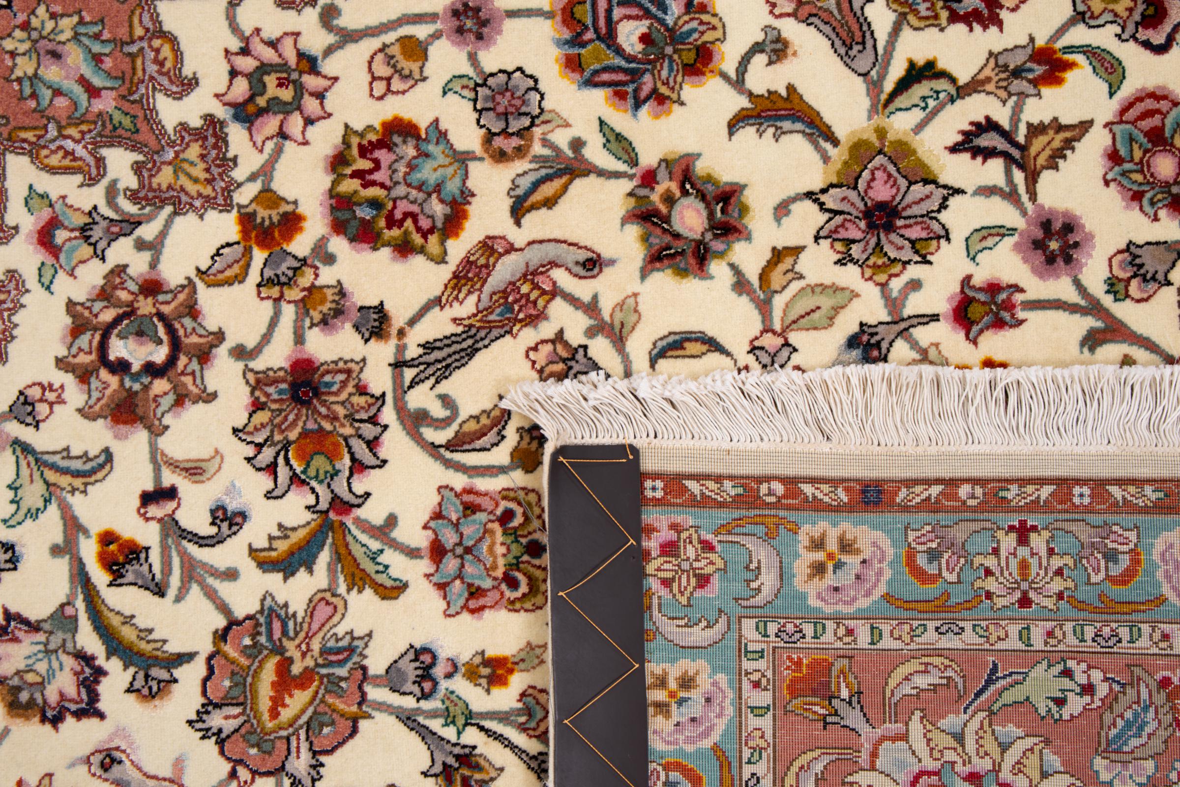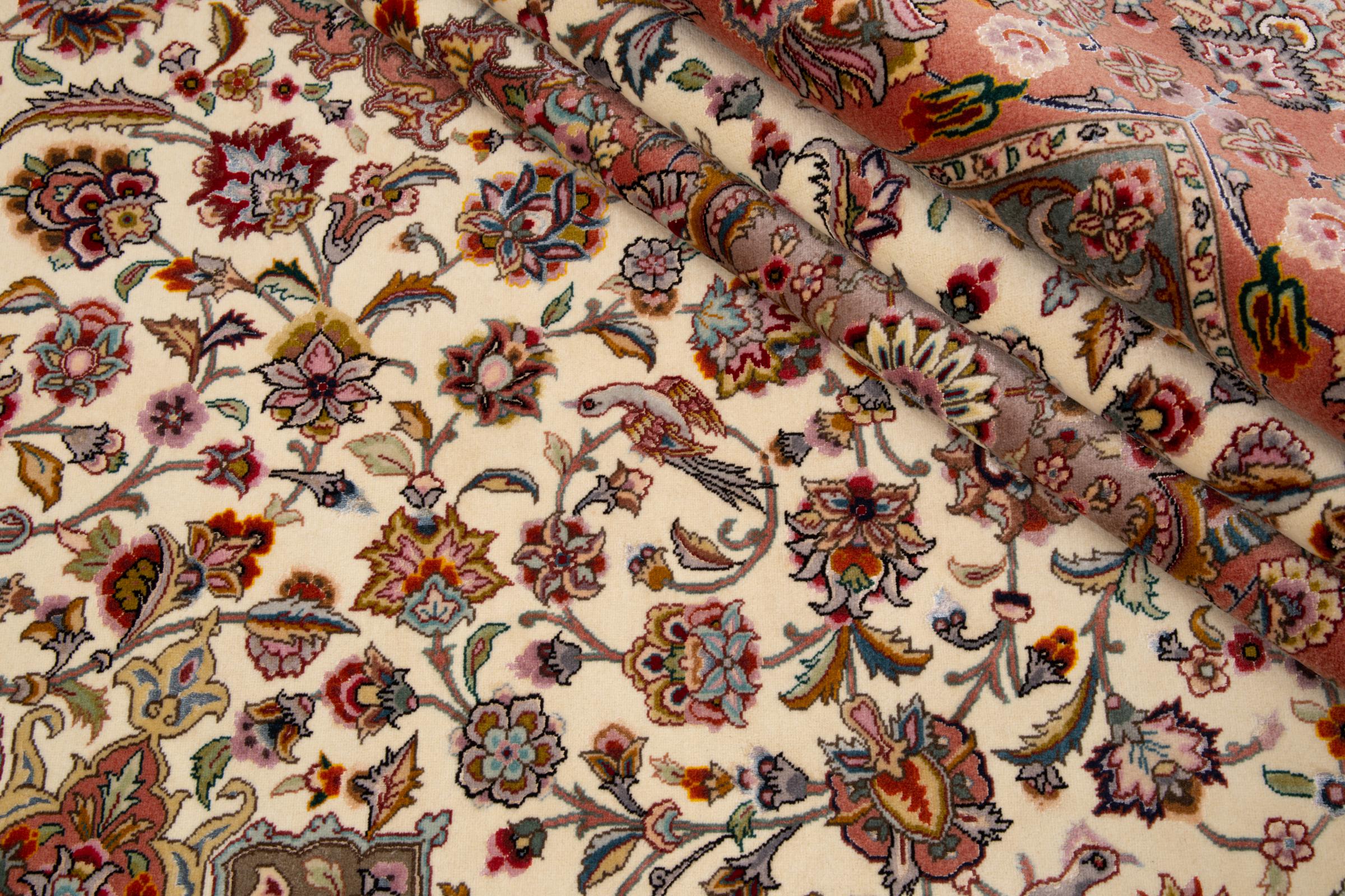 Tapijt ID: 292770007700958 Grootte: 246x247 cm Dikte: ap. 7 mm Knoopdichtheid: 440 000 - 490 000 / m² Verwerking: Handgeknoopte Pool: Wol met zijde Schering: Katoen Oorsprong: Perzië / Iran Leeftijd: Nieuw Gewicht: ap. 18 kg Ook wel bekend als Tabriz, Tabris, Täbris, Tebriz, Tebris, 40Raj, 50Raj Op voorraad: Uniek - Nog maar 1 op voorraad