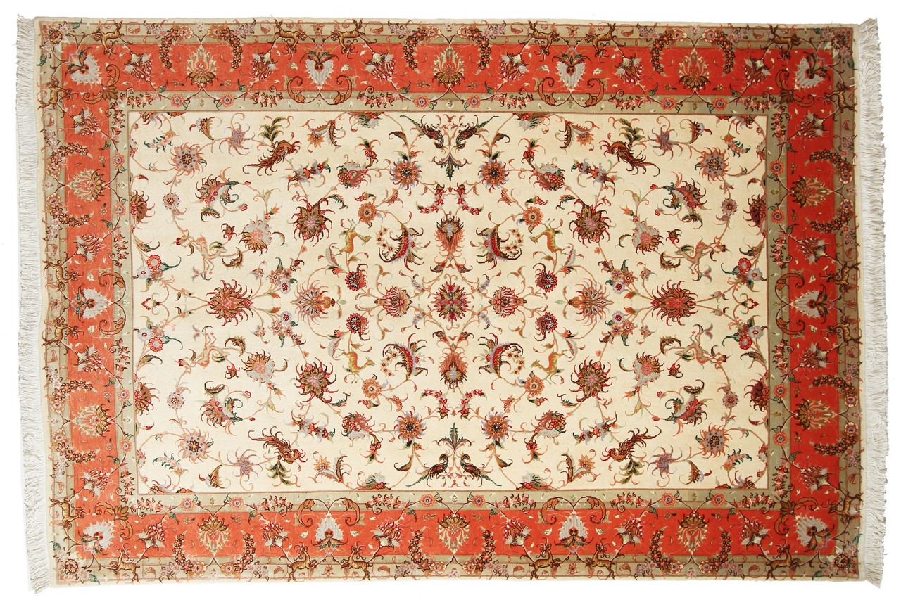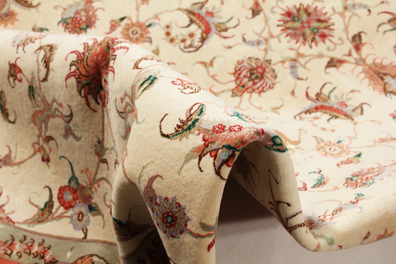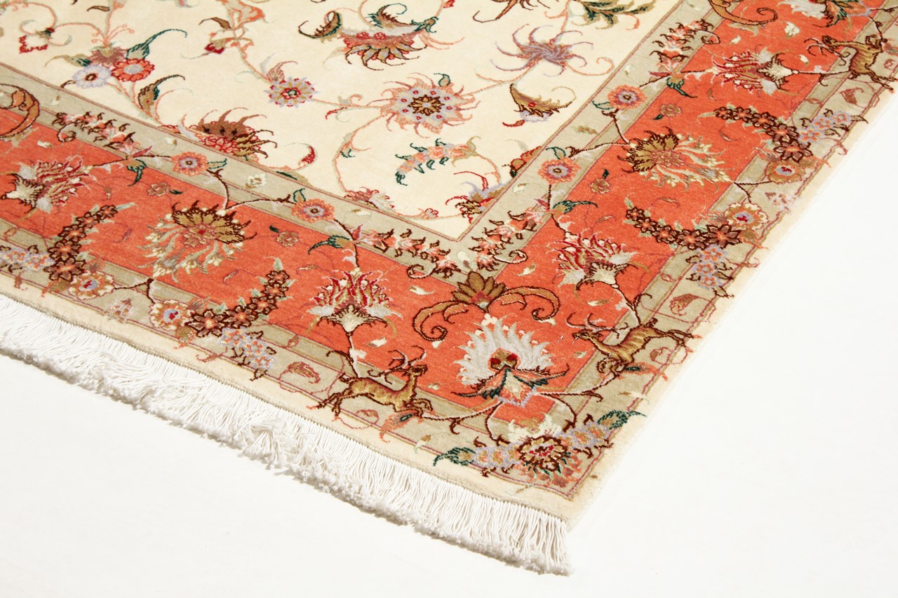Tapijt ID: 76110032386 Grootte: 247x168 cm Dikte: ap. 7 mm Knoopdichtheid: 450 000 - 500 000 / m² Verwerking: Handgeknoopte Pool: Wol met zijde Schering: Katoen Oorsprong: Perzië / Iran Leeftijd: Nieuw Gewicht: ap. 12 kg Ook wel bekend als Tabriz, Tabris, Täbris, Tebriz, Tebris, 40Raj, 50Raj Op voorraad: Uniek - Nog maar 1 op voorraad