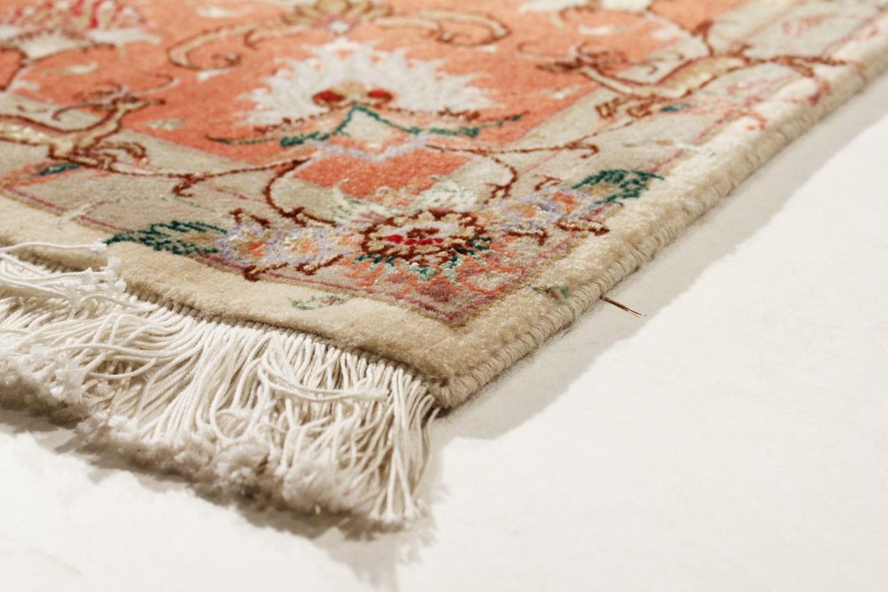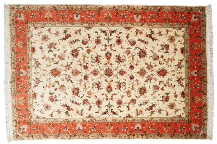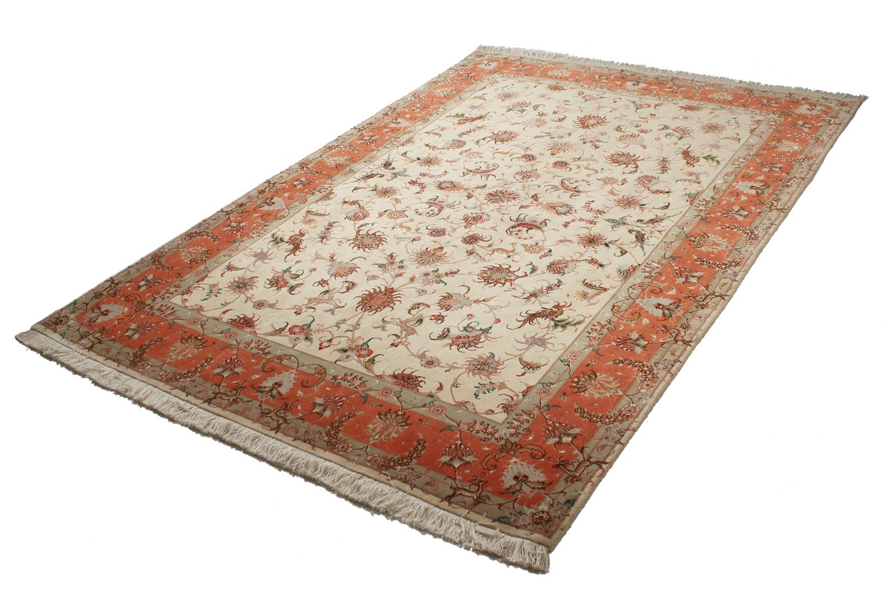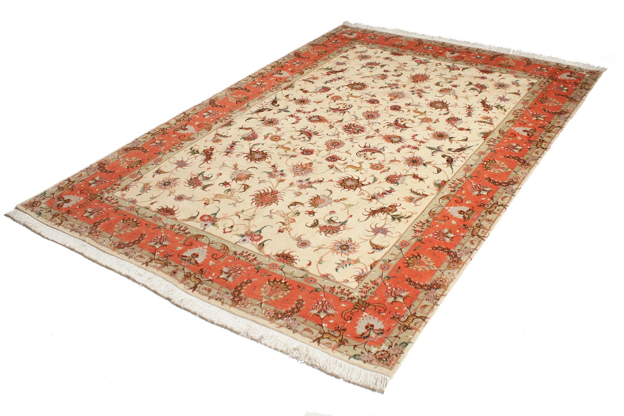 Tapijt ID: 76110032386 Grootte: 247x168 cm Dikte: ap. 7 mm Knoopdichtheid: 450 000 - 500 000 / m² Verwerking: Handgeknoopte Pool: Wol met zijde Schering: Katoen Oorsprong: Perzië / Iran Leeftijd: Nieuw Gewicht: ap. 12 kg Ook wel bekend als Tabriz, Tabris, Täbris, Tebriz, Tebris, 40Raj, 50Raj Op voorraad: Uniek - Nog maar 1 op voorraad
