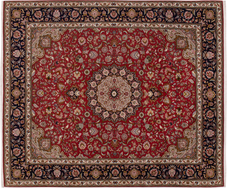 Tapijt ID: 292736008228803 Grootte: 301x252 cm Dikte: ap. 7 mm Knoopdichtheid: 440 000 - 490 000 / m² Verwerking: Handgeknoopte Pool: Wol met zijde Schering: Katoen Oorsprong: Perzië / Iran Leeftijd: Nieuw Gewicht: ap. 23 kg Ook wel bekend als Tabriz, Tabris, Täbris, Tebriz, Tebris, 40Raj, 50Raj Op voorraad: Uniek - Nog maar 1 op voorraad