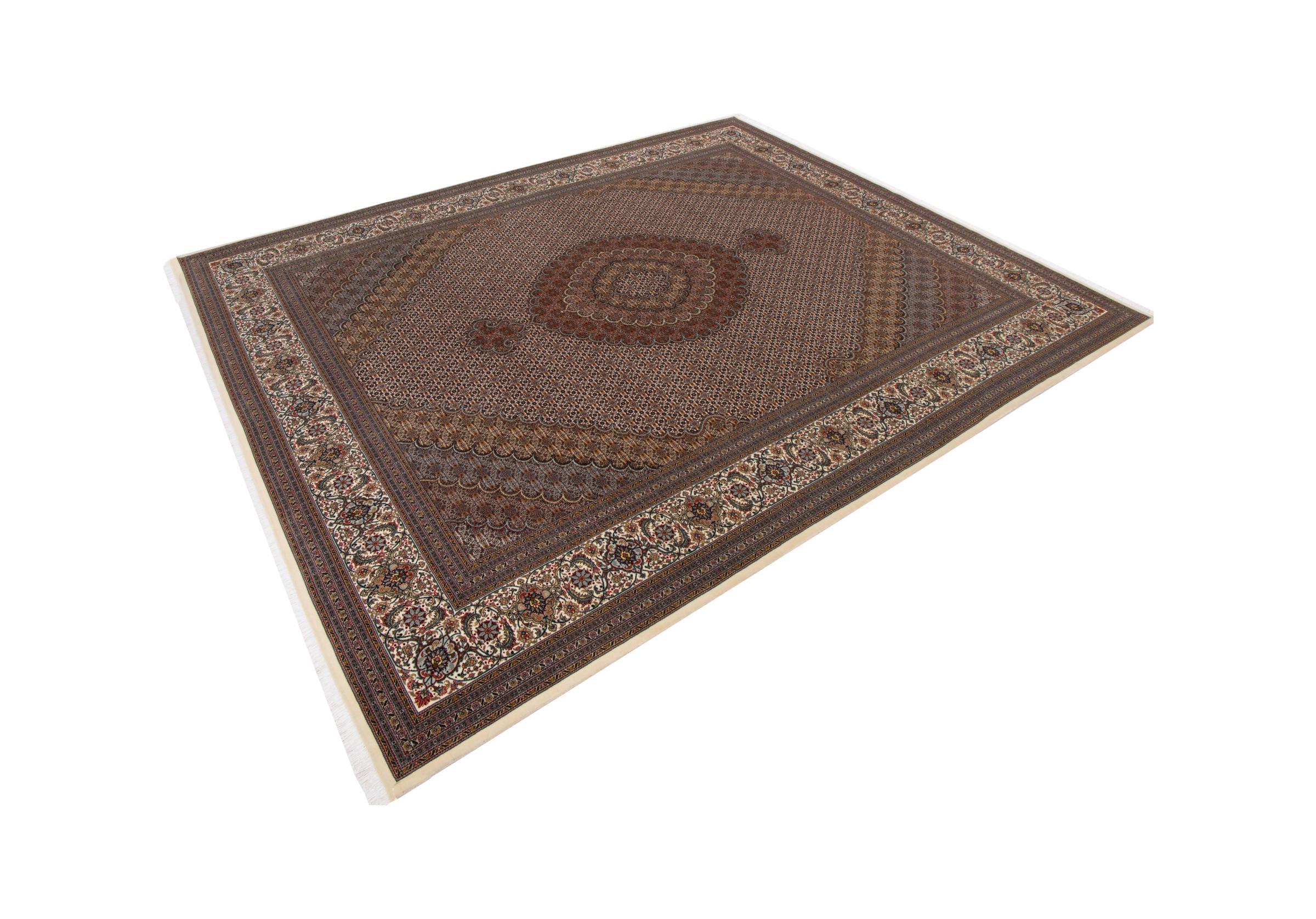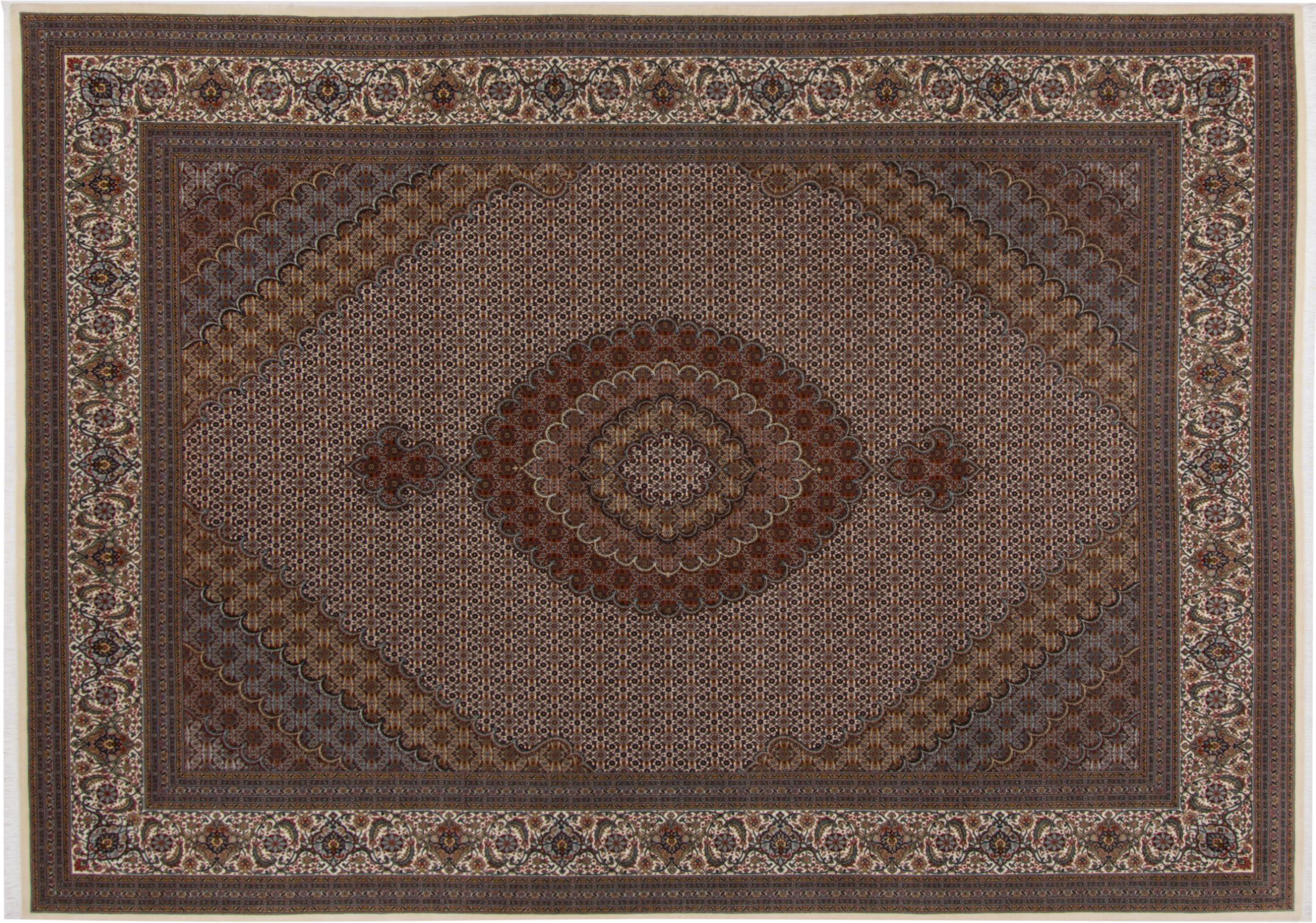 Tapijt ID: 293736004572367 Grootte: 344x243 cm Dikte: ap. 7 mm Knoopdichtheid: 440 000 - 490 000 / m² Verwerking: Handgeknoopte Pool: Wol met zijde Schering: Katoen Oorsprong: Perzië / Iran Leeftijd: Nieuw Gewicht: ap. 25 kg Ook wel bekend als Tabriz, Tabris, Täbris, Tebriz, Tebris, 40Raj, 50Raj Op voorraad: Uniek - Nog maar 1 op voorraad