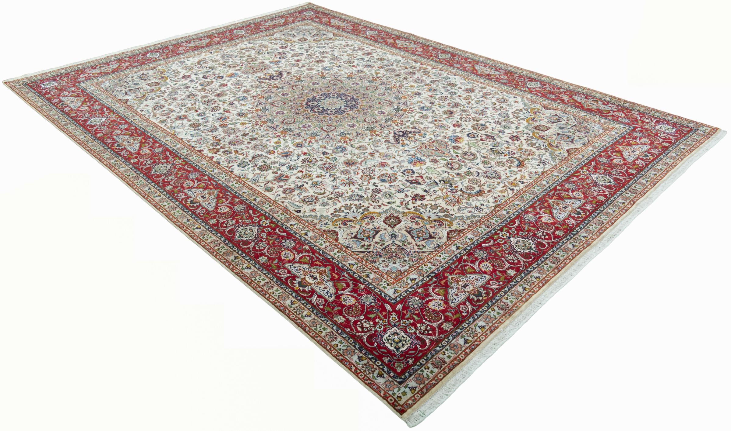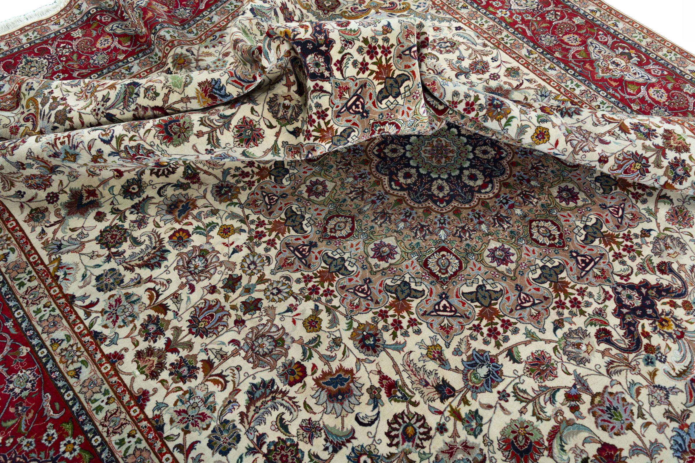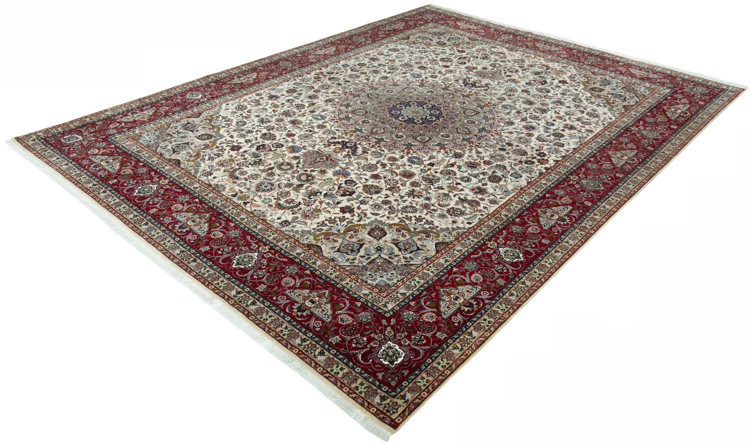 Tapijt ID: 285301005901050 Grootte: 406x304 cm Dikte: ap. 7 mm Knoopdichtheid: 450 000 - 500 000 / m² Verwerking: Handgeknoopte Pool: Kurkwol met zijde Schering: Katoen Oorsprong: Perzië / Iran Leeftijd: Nieuw Gewicht: ap. 37 kg Ook wel bekend als Tabriz, Tabris, Täbris, Tebriz, Tebris, 40Raj, 50Raj Op voorraad: Uniek - Nog maar 1 op voorraad