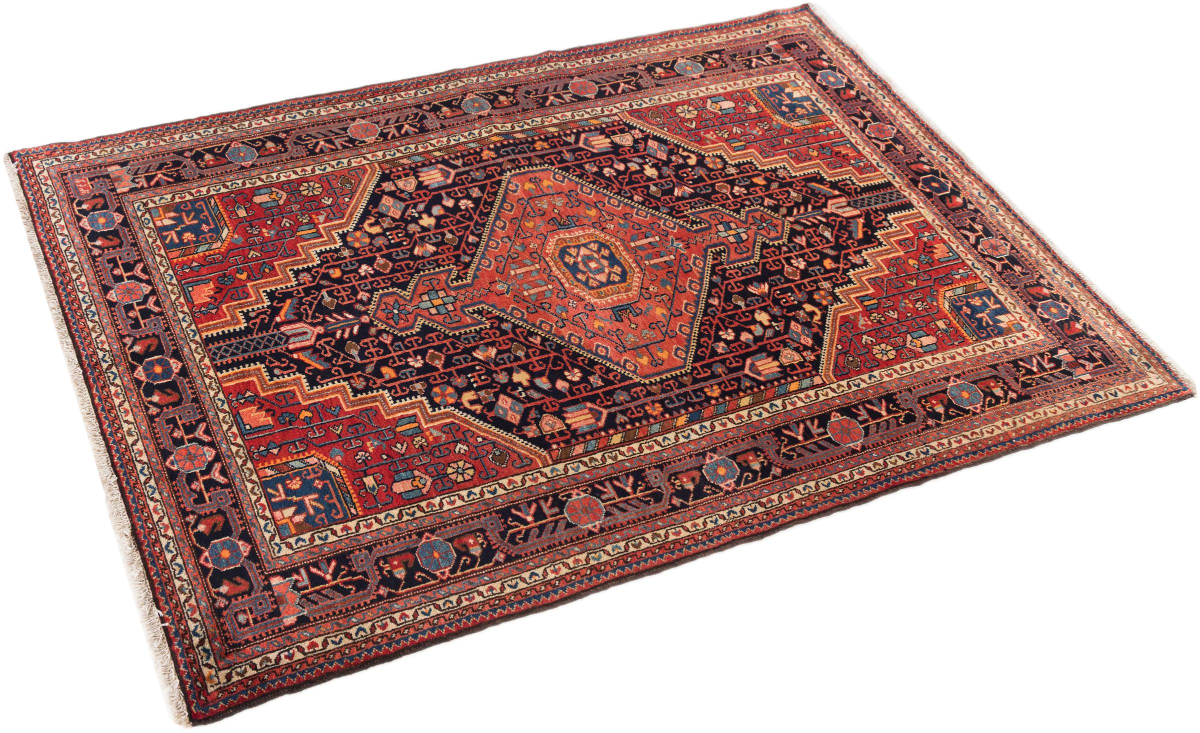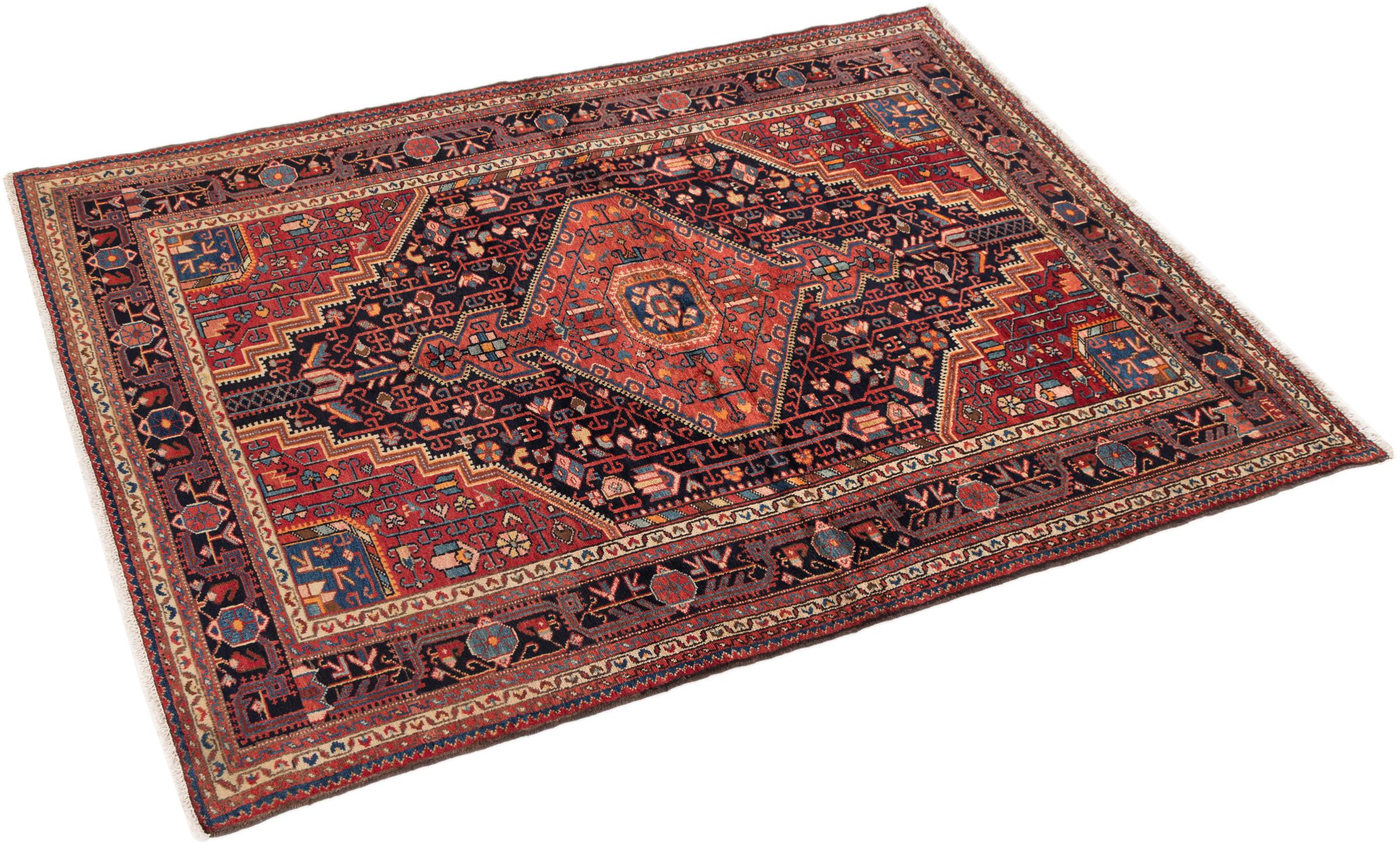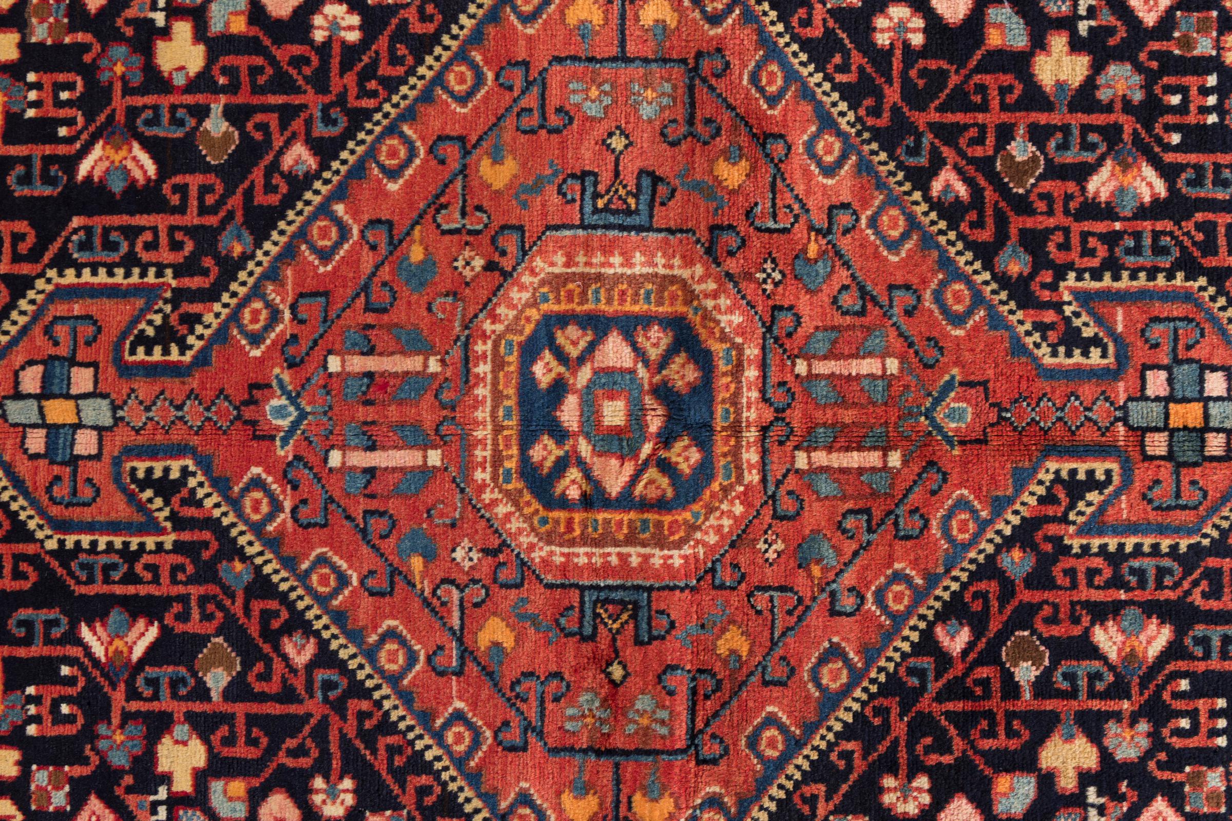 Dit tapijt behoort tot de dorps- en nomadentapijten uit Iran, het vroegere Perzië. Dit type tapijt wordt met de hand geknoopt in kleinere steden en dorpen in de oude traditie. Zelfs nomaden knopen nog steeds Perzische tapijten in de open lucht. De tapijten worden geknoopt zonder patroon en volledig vanaf de kop. Ze worden gekenmerkt door klassieke ornamenten, die in rechte en geometrische patronen zijn gerangschikt. Dankzij hun cultureel-traditionele oorsprong hebben deze tapijten een uniek karakter dat het oude Perzië belichaamt.