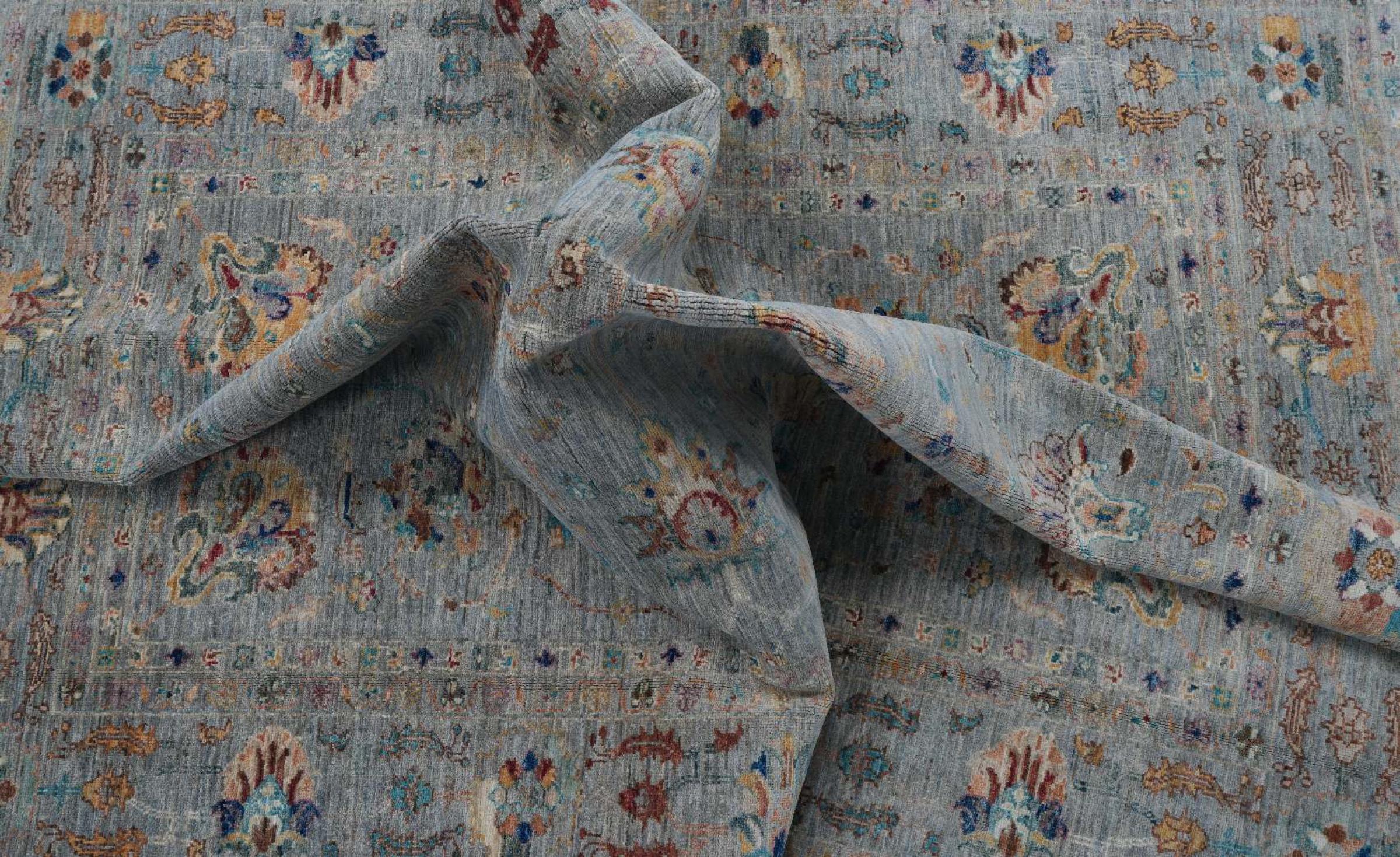 Dit tapijt is gemaakt van handgesponnen schapenwol van de hoogste kwaliteit. Vooral in Iran (voormalig Perzië), Afghanistan en Pakistan wordt de wol nog met de hand gesponnen voordat het eigenlijke knopen van het tapijt begint. Wol heeft zich door de eeuwen heen bewezen als een natuurlijk en extreem slijtvast materiaal. Het heeft onder andere vuilafstotende en warmte-isolerende eigenschappen. Tegelijkertijd is wol onvergelijkbaar zacht en heeft het een natuurlijke glans.