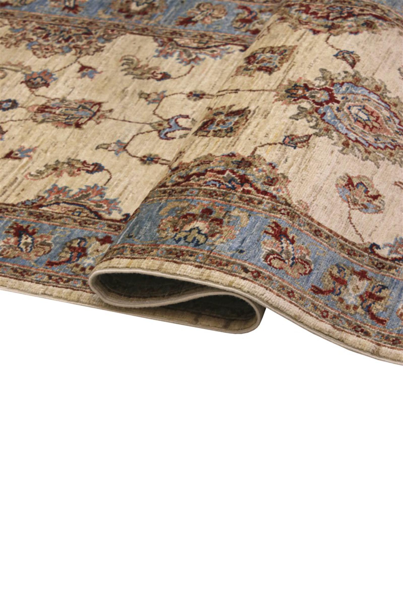Dit tapijt is gemaakt van handgesponnen schapenwol van de hoogste kwaliteit. Vooral in Iran (voormalig Perzië), Afghanistan en Pakistan wordt de wol nog met de hand gesponnen voordat het eigenlijke knopen van het tapijt begint. Wol heeft zich door de eeuwen heen bewezen als een natuurlijk en extreem slijtvast materiaal. Het heeft onder andere vuilafstotende en warmte-isolerende eigenschappen. Tegelijkertijd is wol onvergelijkbaar zacht en heeft het een natuurlijke glans.