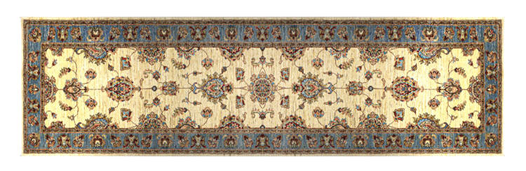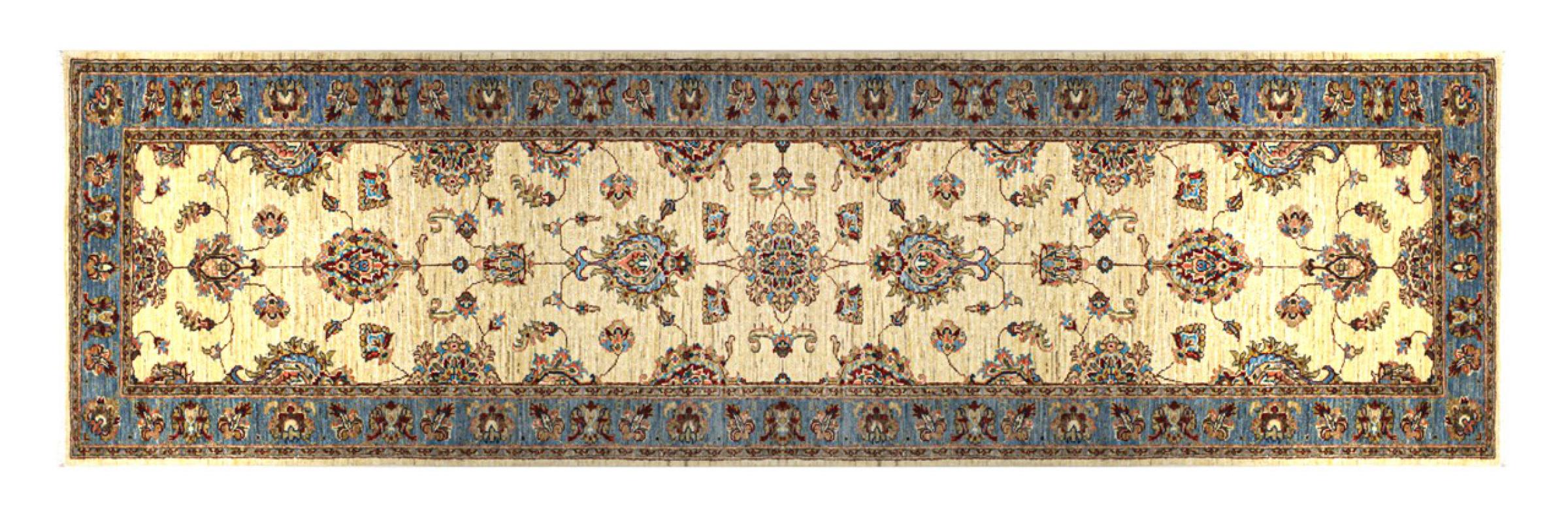 Tapijt ID: 290653008032348 Grootte: 304x85 cm Dikte: ap. 5 mm Knoopdichtheid: 160 000 - 200 000 / m² Verwerking: Handgeknoopte Pool: Hand gesponnen wol Schering: Katoen Oorsprong: Pakistan Leeftijd: Nieuw Gewicht: ap. 8 kg Op voorraad: Uniek - Nog maar 1 op voorraad
