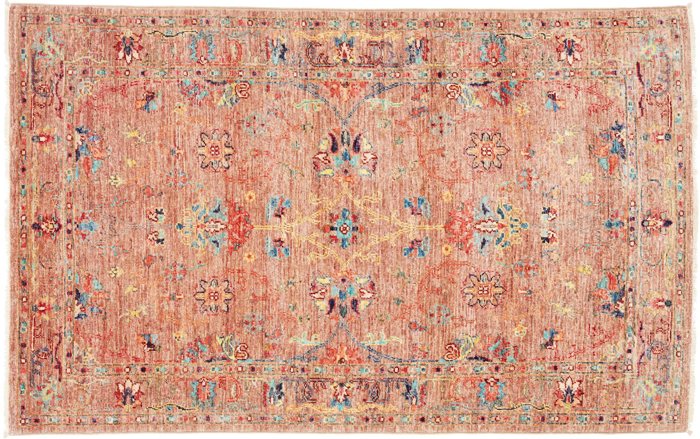 Tapijt ID: 306871006892563 Grootte: 153x99 cm Dikte: ap. 6 mm Knoopdichtheid: 128 000 - 160 000 / m² Verwerking: Handgeknoopte Pool: Hand gesponnen wol Schering: Katoen Oorsprong: Pakistan Leeftijd: Nieuw Gewicht: ap. 5 kg Op voorraad: Uniek - Nog maar 1 op voorraad
