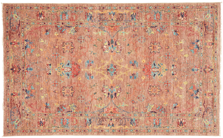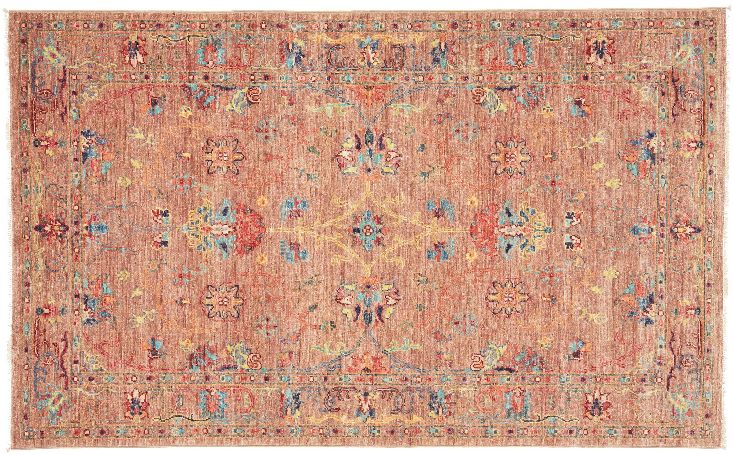 Tapijt ID: 306892008474323 Grootte: 158x98 cm Dikte: ap. 6 mm Knoopdichtheid: 128 000 - 160 000 / m² Verwerking: Handgeknoopte Pool: Hand gesponnen wol Schering: Katoen Oorsprong: Pakistan Leeftijd: Nieuw Gewicht: ap. 5 kg Op voorraad: Uniek - Nog maar 1 op voorraad