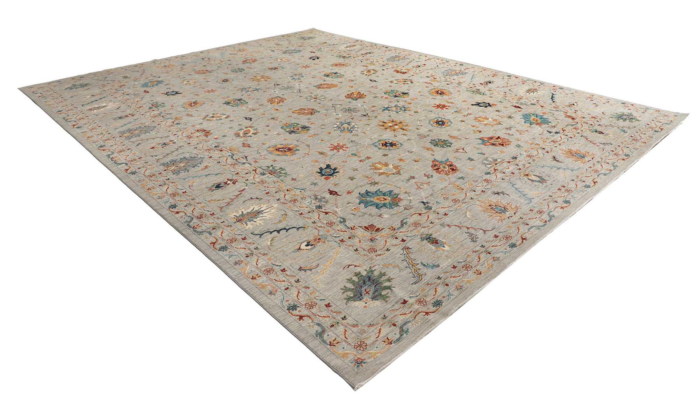 Tapijt ID: 306306002912890 Grootte: 482x384 cm Dikte: ap. 6 mm Knoopdichtheid: 128 000 - 160 000 / m² Verwerking: Handgeknoopte Pool: Hand gesponnen wol Schering: Katoen Oorsprong: Pakistan Leeftijd: Nieuw Gewicht: ap. 65 kg Op voorraad: Uniek - Nog maar 1 op voorraad