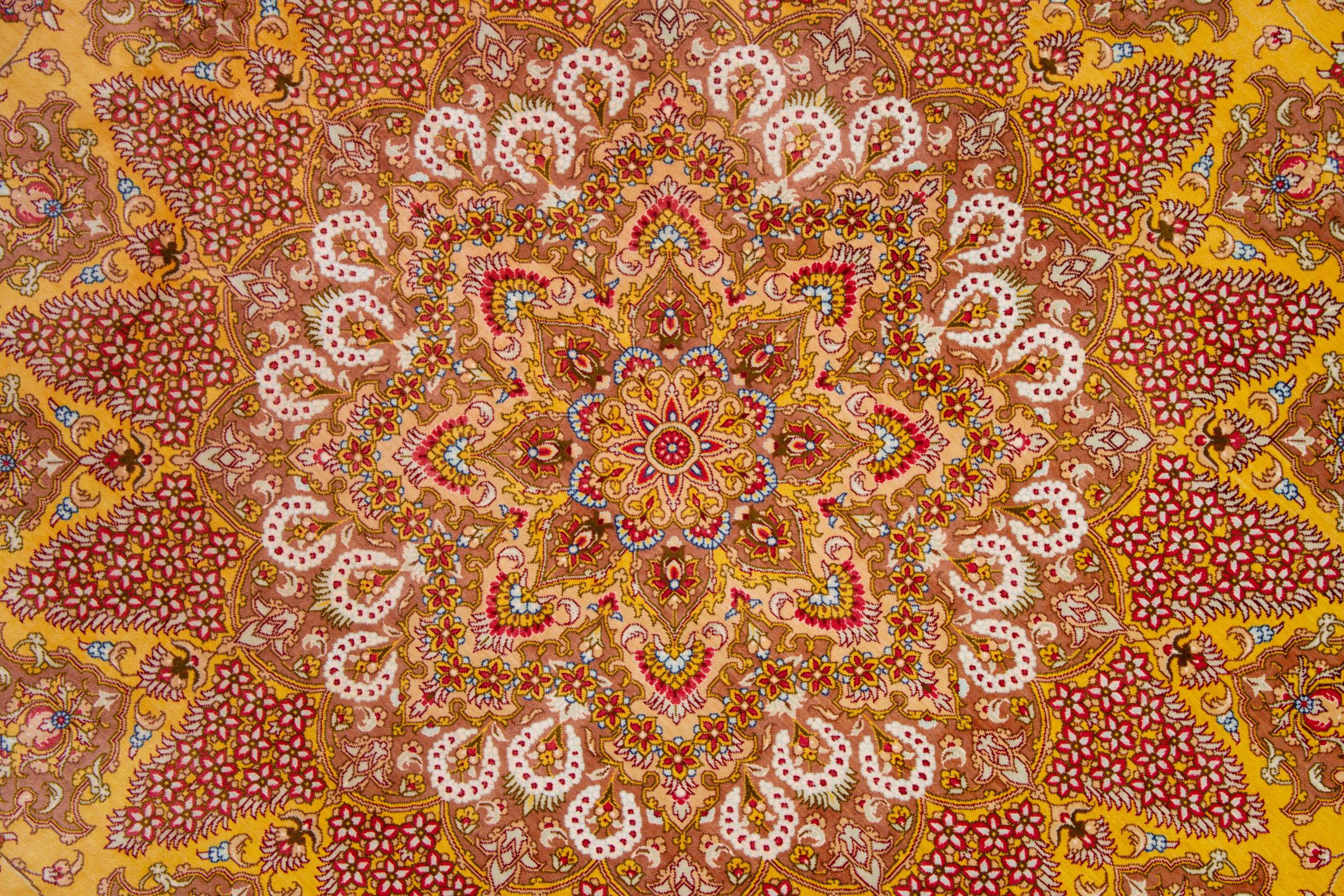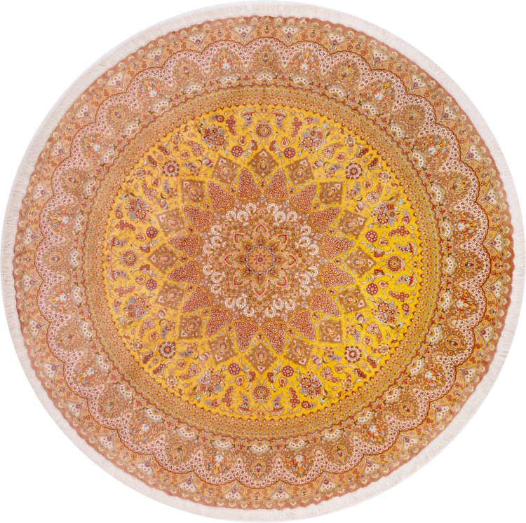 Tapijt ID: 292725003882768 Grootte: 246x245 cm Dikte: ap. 3 mm Knoopdichtheid: 810 000 / m² Verwerking: Handgeknoopte Pool: Zijde Schering: Zijde Oorsprong: Perzië / Iran Leeftijd: Nieuw Gewicht: ap. 12 kg Op voorraad: Uniek - Nog maar 1 op voorraad